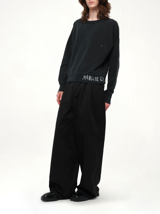 The pants in the Maison Margiela men's collection are the epitome of forward-thinking and timelessly elegant design. Whether you prefer sleek chinos or more relaxed, loose-fit denim jeans, every pair is crafted with precision and features innovative detailing such as hidden fastenings, cropped lengths, and asymmetrical seams.