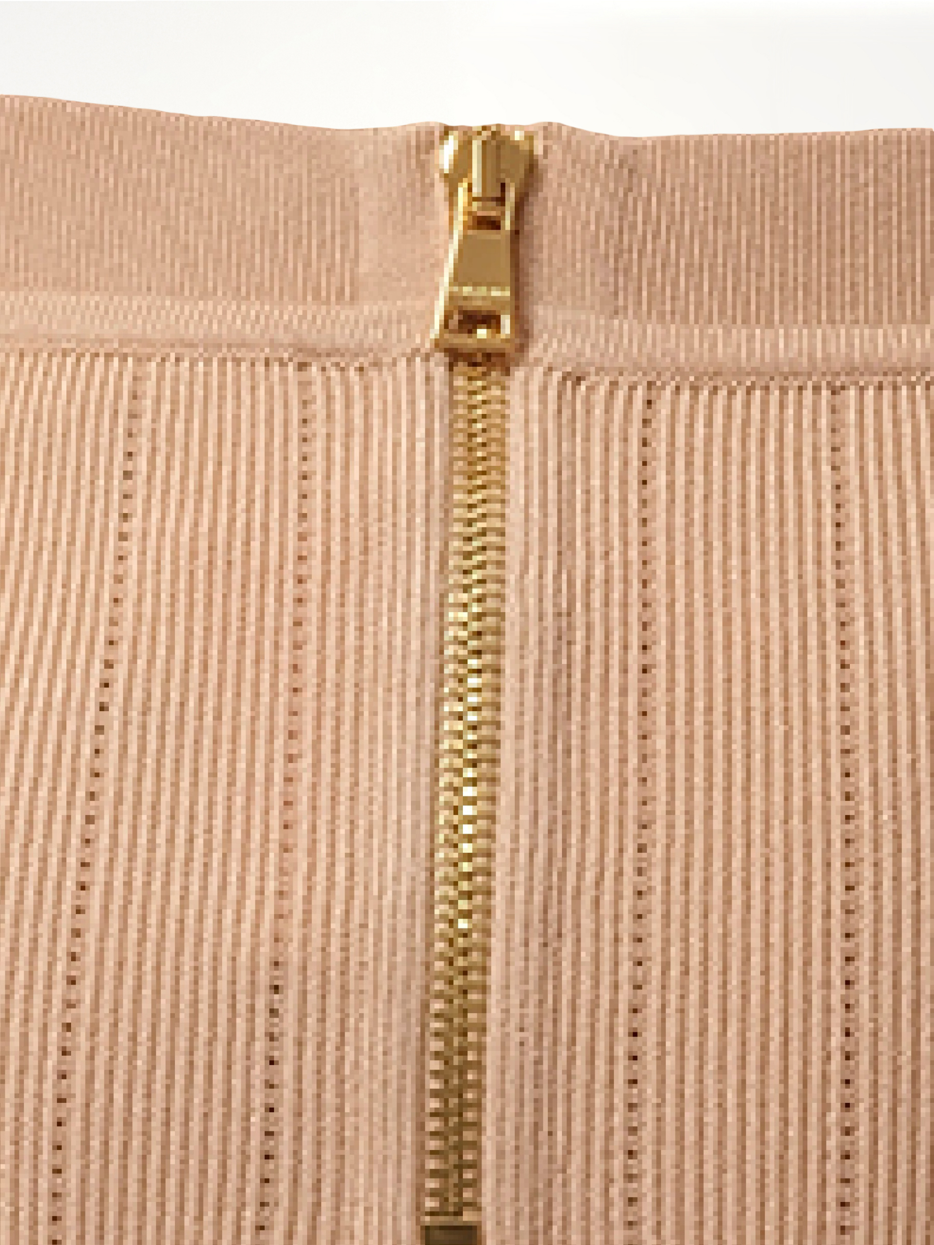2 Pockets Buttoned Knit Short Skirt in Nude Rose