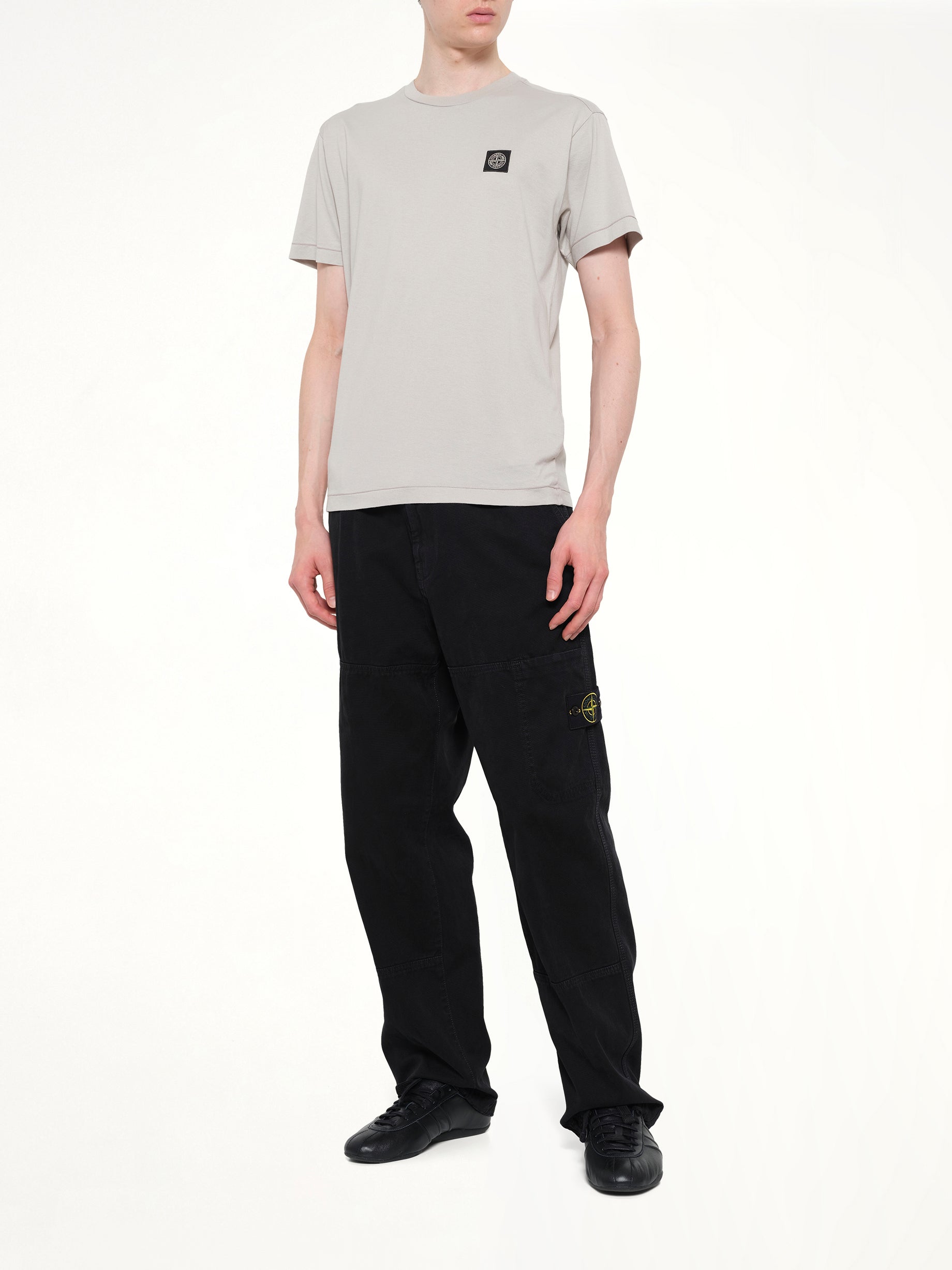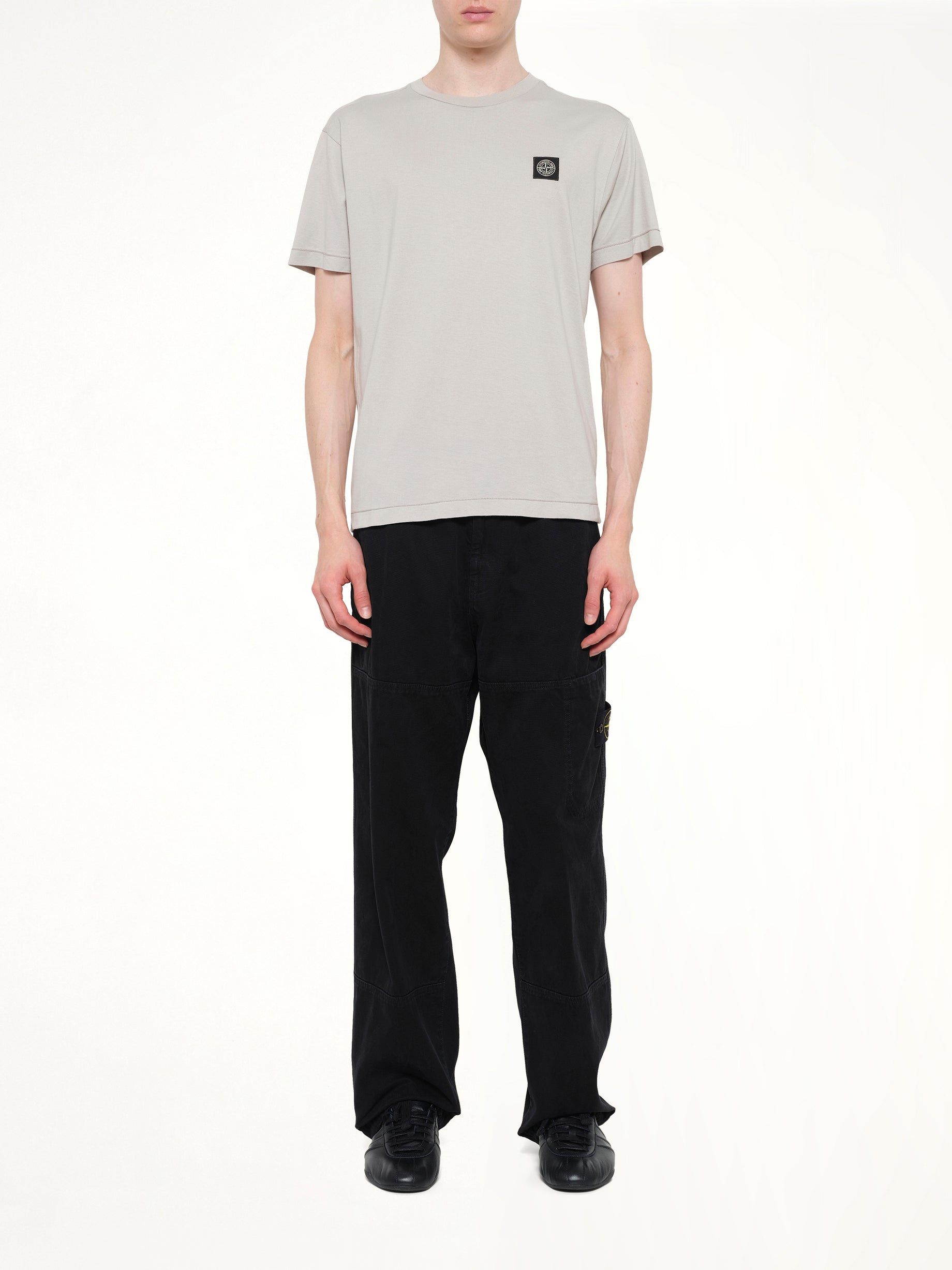Stone Island's 2100027 Logo Patch T-Shirt in Pearl Grey is a stylish and versatile addition to any wardrobe. This t-shirt combines comfort with a modern aesthetic, making it perfect for casual outings or layering.