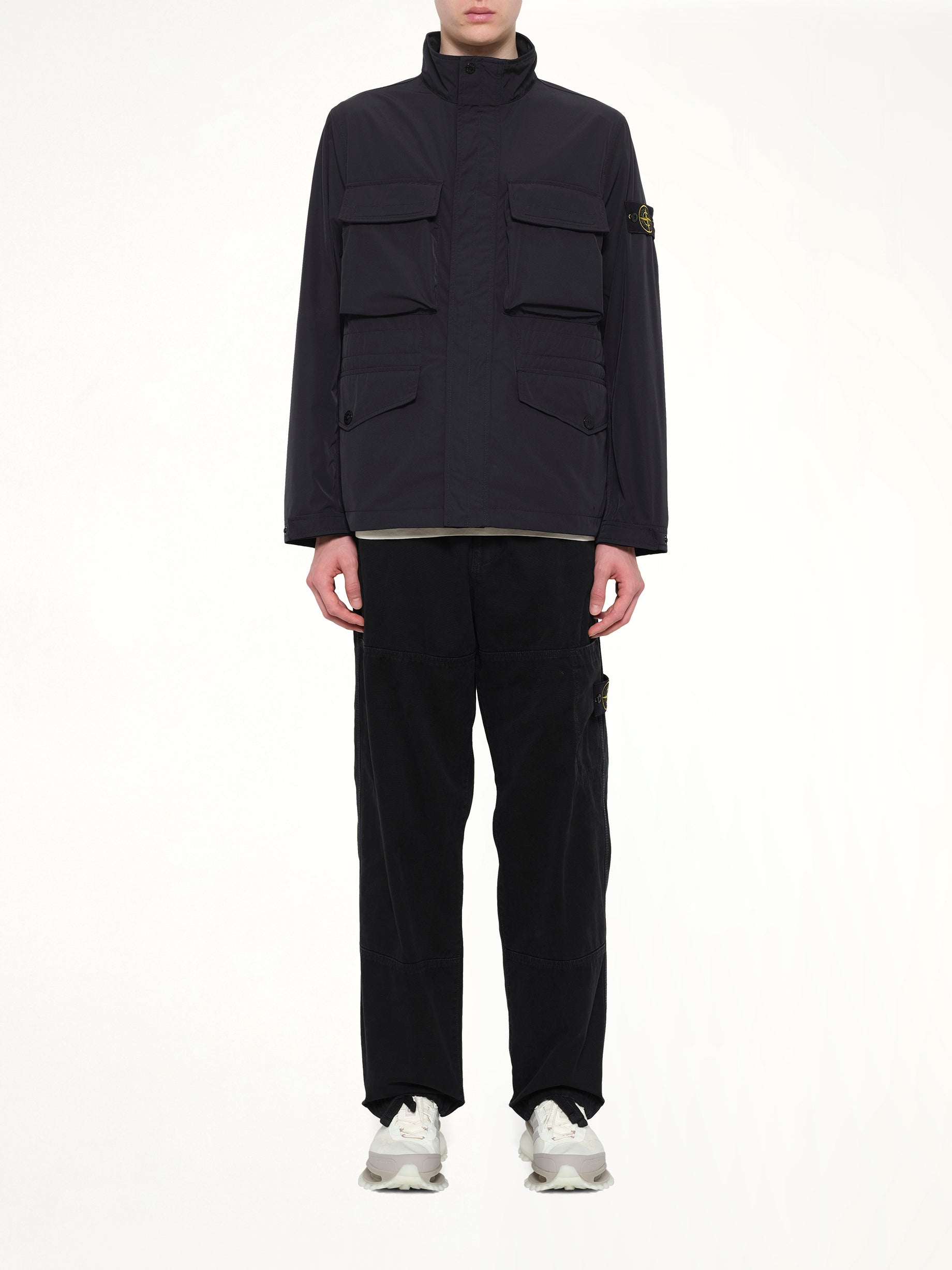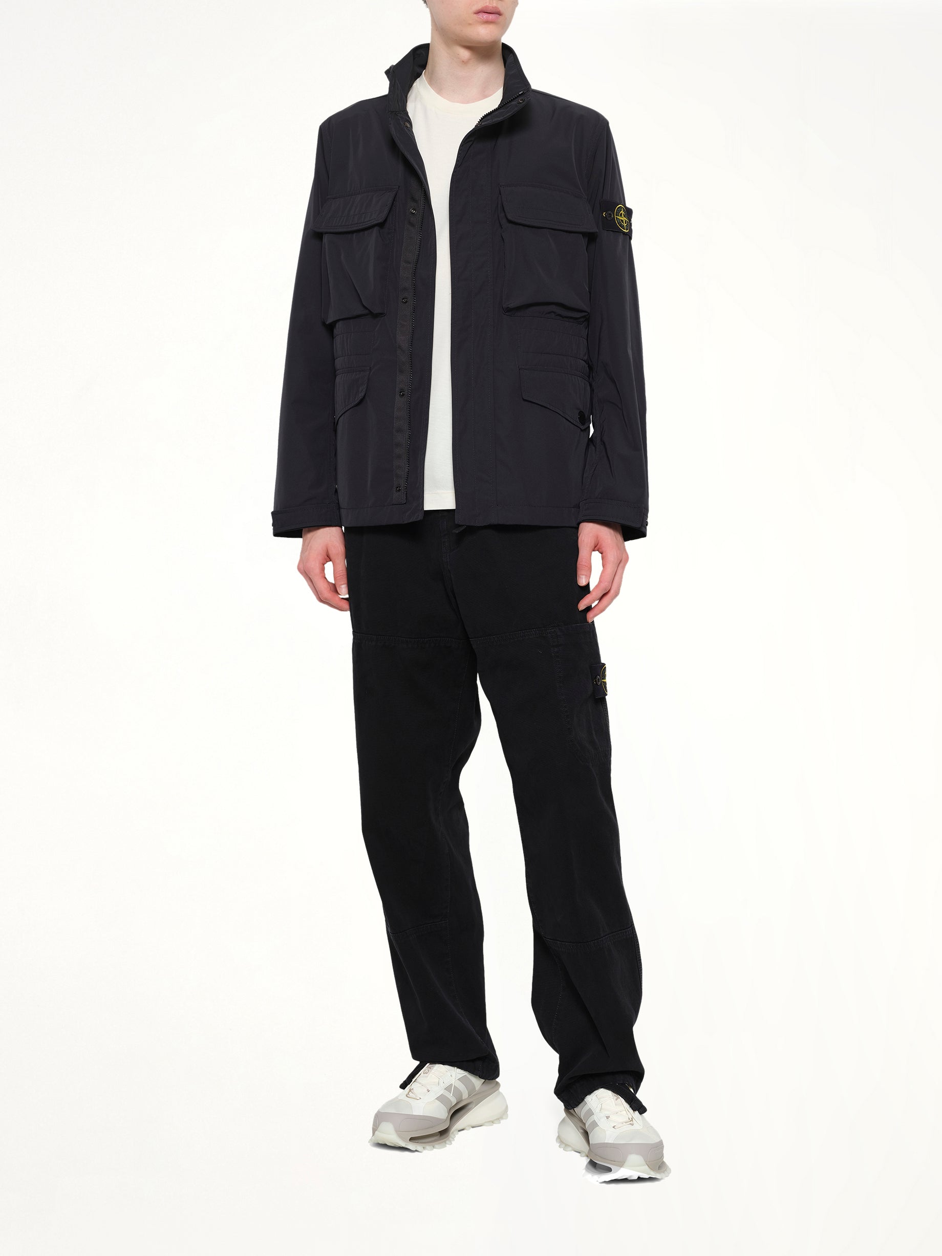 Stone Island's 4100034 Field Jacket in Black is a versatile outerwear piece designed for both style and functionality. This jacket combines a sleek aesthetic with practical features, making it ideal for various weather conditions.