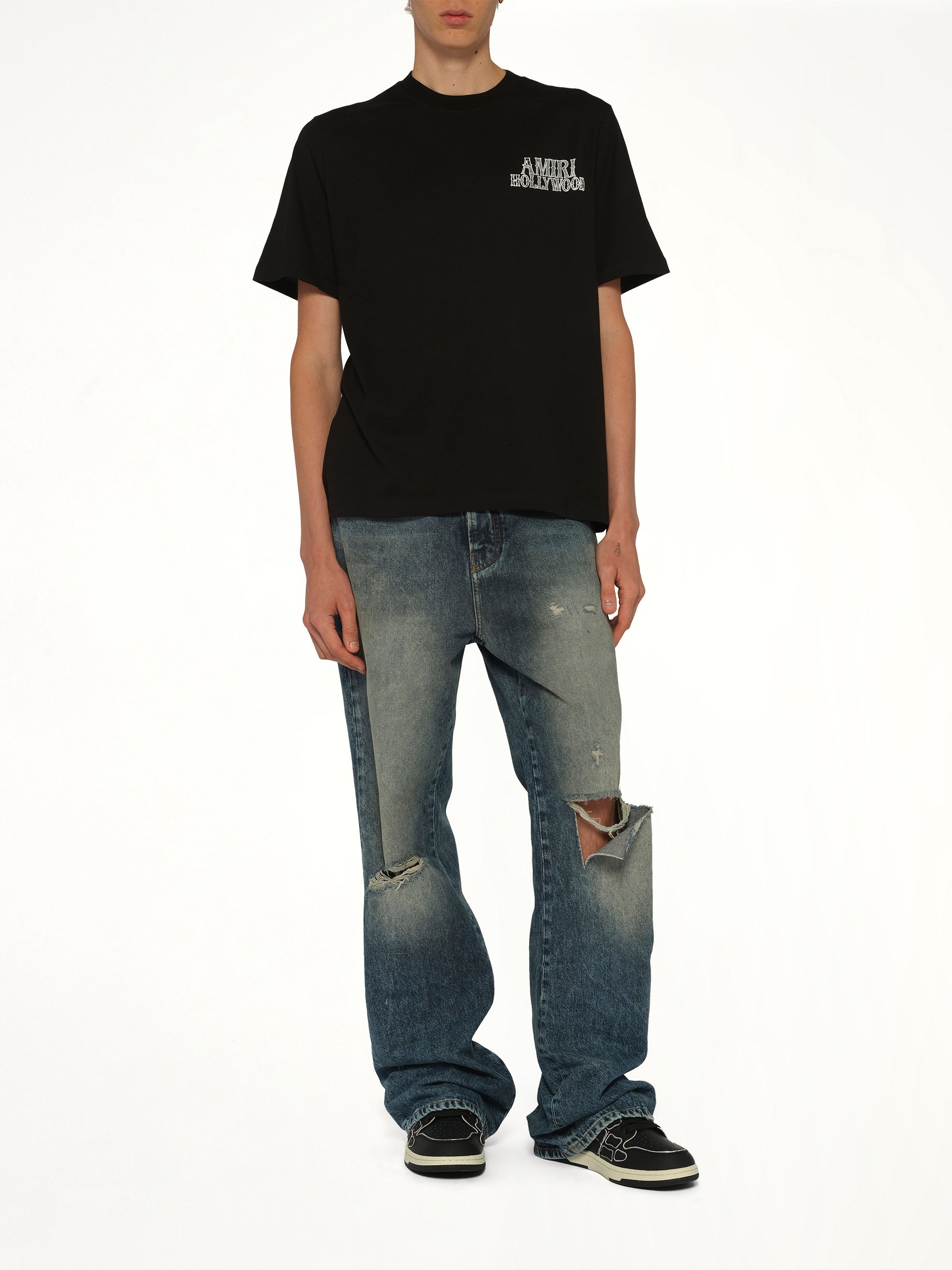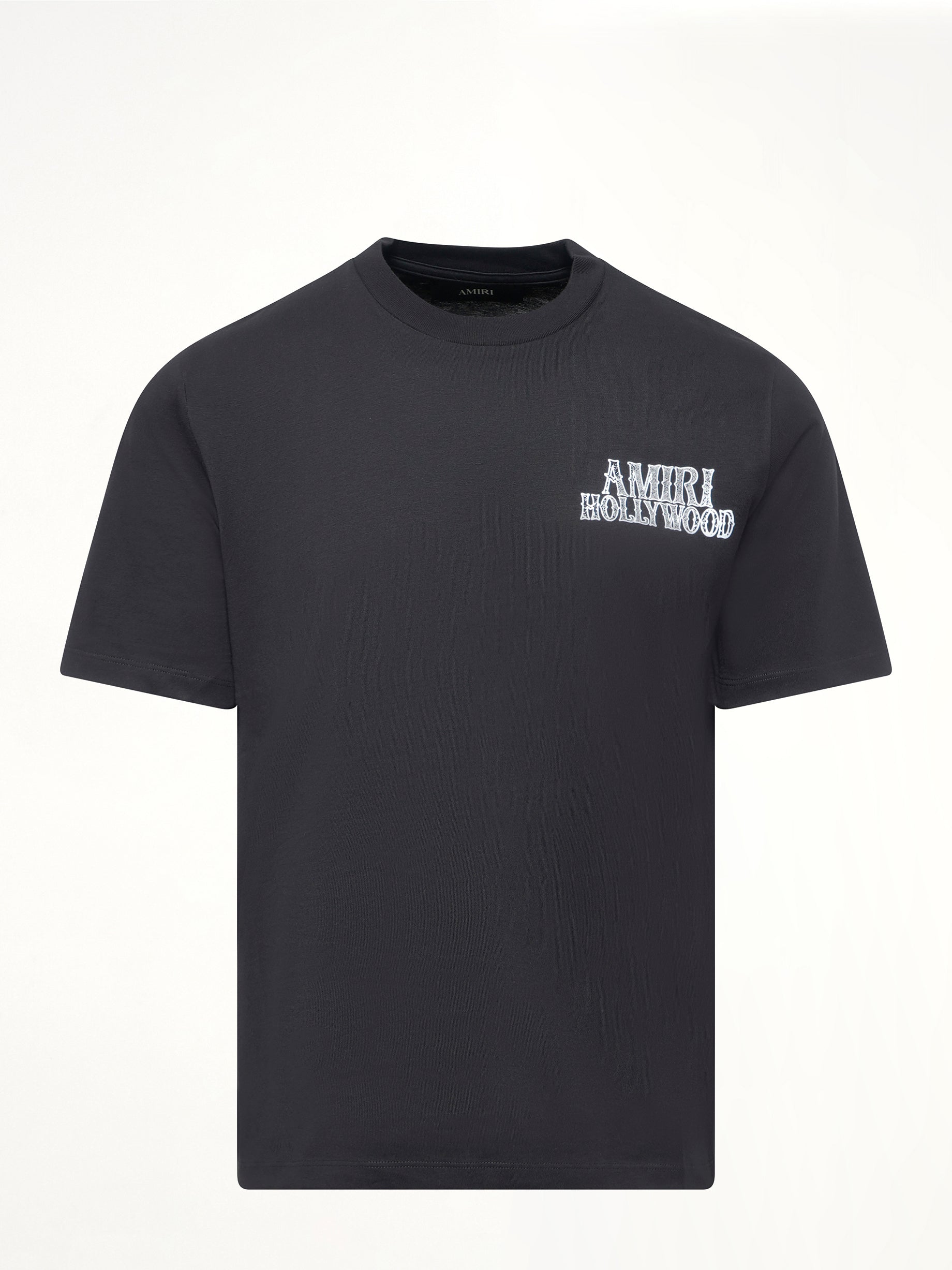 Amiri's Amiri Hollywood City T-Shirt in Black is a stylish and contemporary piece that captures the essence of urban fashion. This t-shirt features a bold graphic design that pays homage to the iconic city of Hollywood.