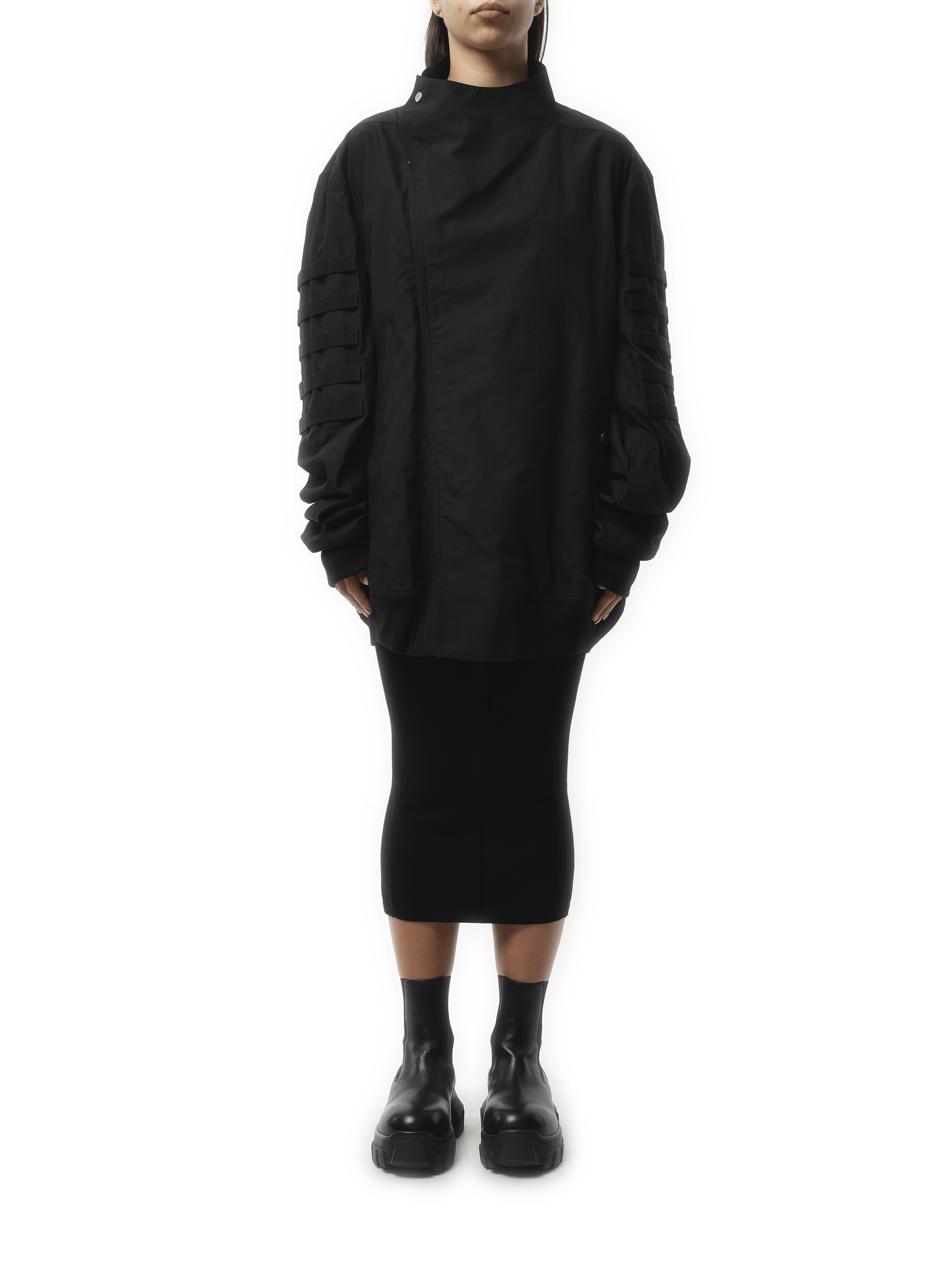 Rick Owens's Anthem Jacket in Black is crafted from 100% Tencel ripstop, a sustainable material that is both biodegradable and water-repellent. The jacket features an off-center zipper, ribbed cuffs and hem, and functional side pockets for a contemporary, utilitarian look.