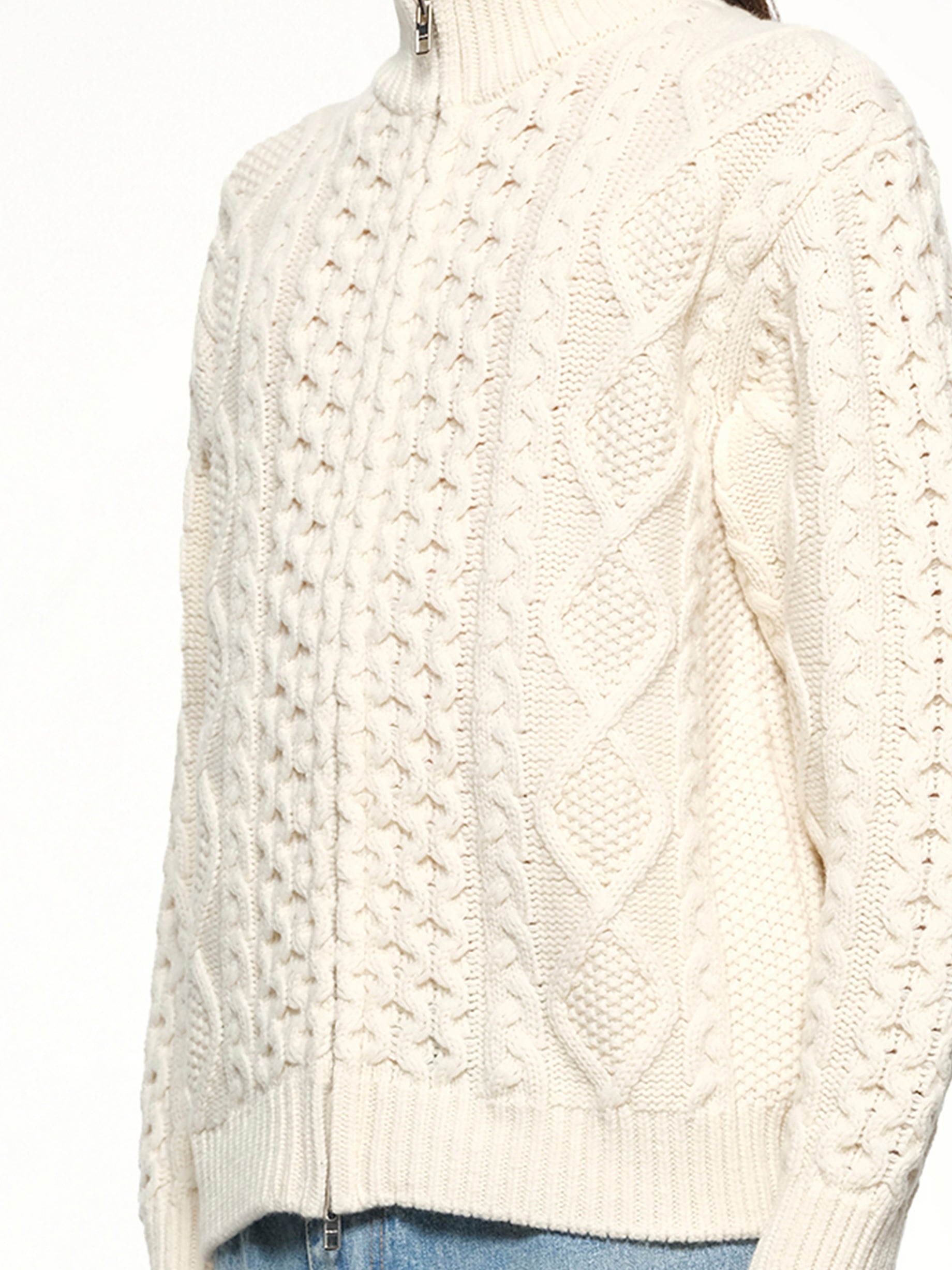 Cable Knit Zip Up in Cream