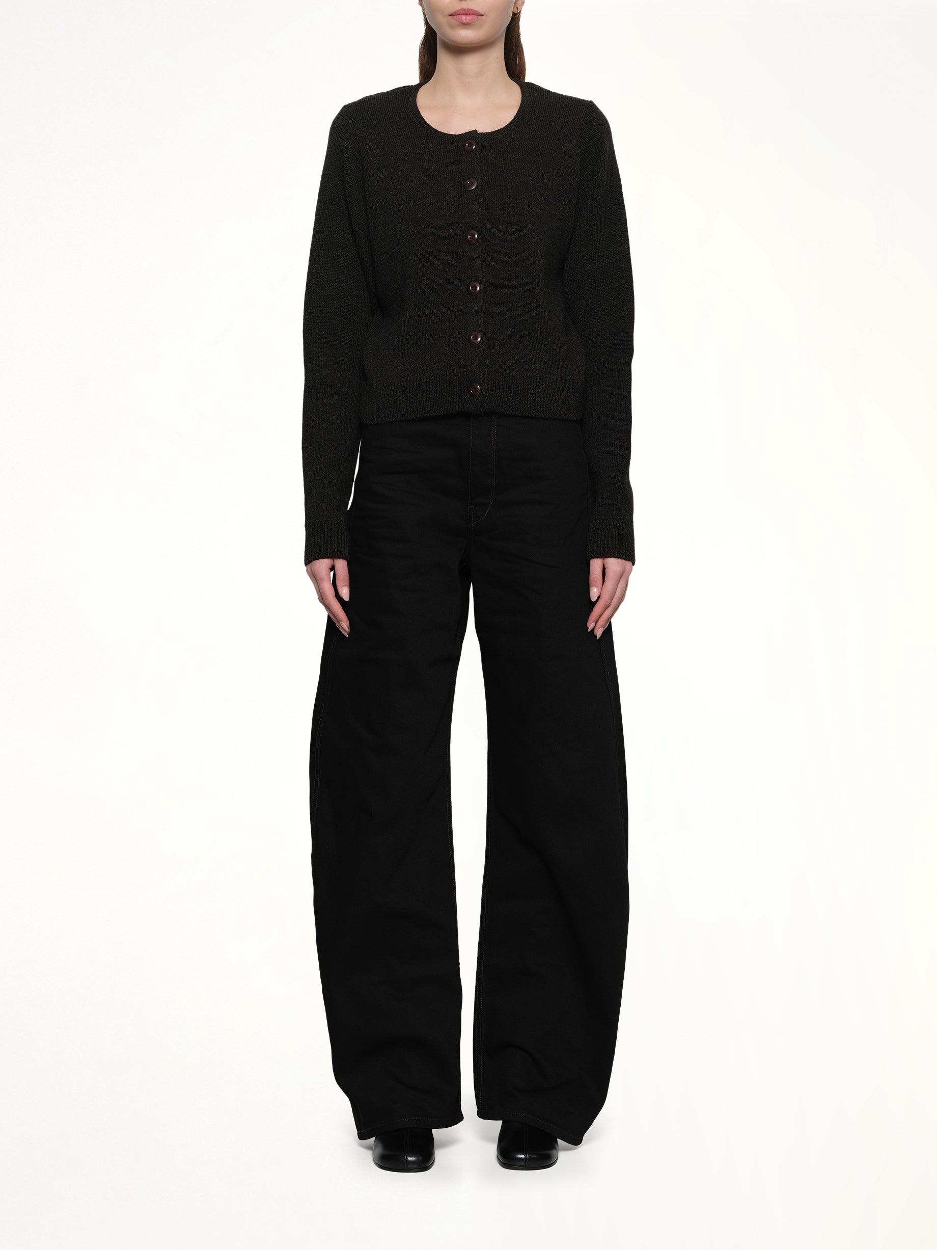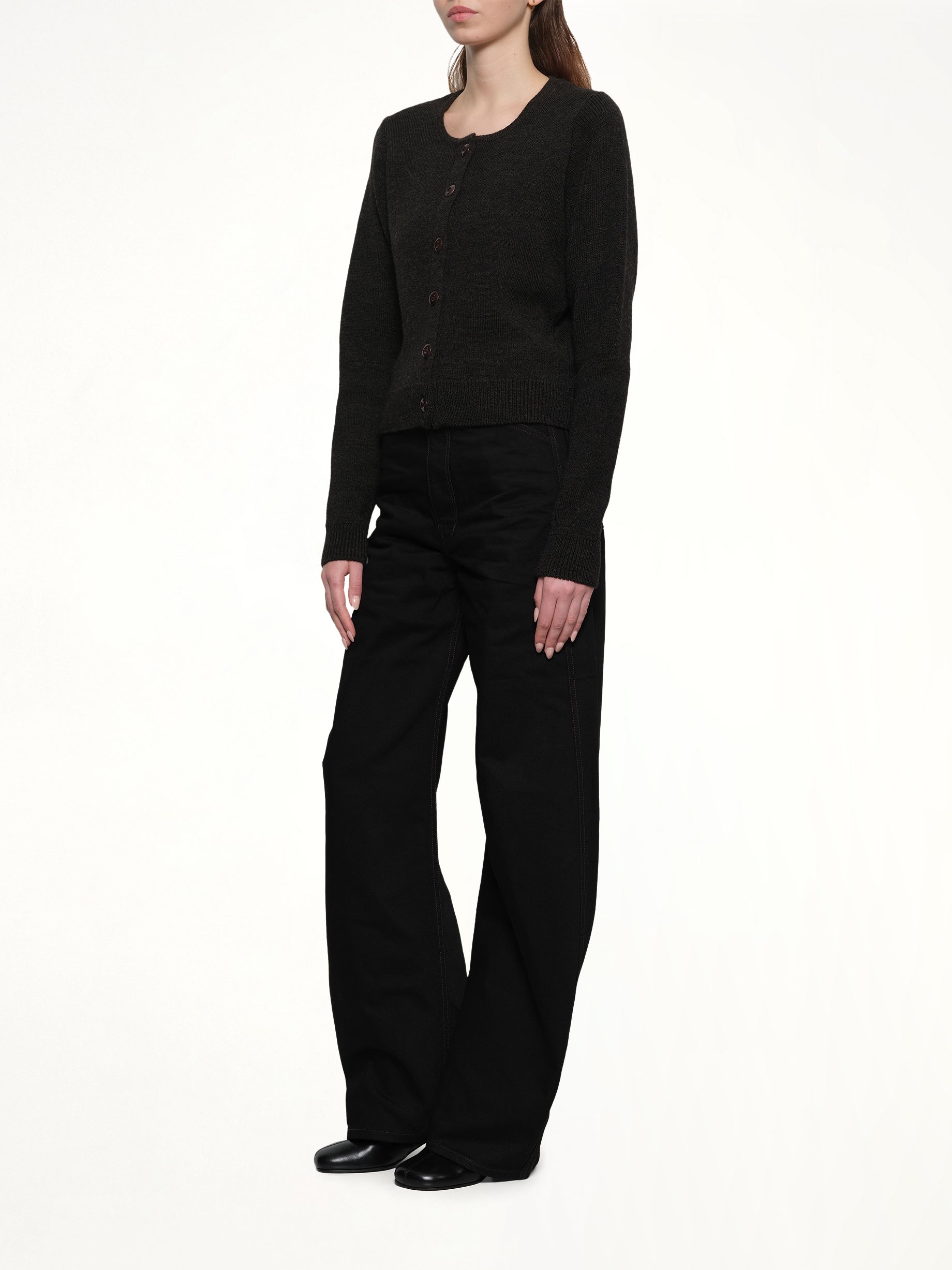 Lemaire's Cardigan in Dark Espresso is a sophisticated addition to any wardrobe, offering a timeless silhouette with a modern twist. Its rich, dark hue complements a variety of styles, making it a versatile piece for both casual and formal occasions.