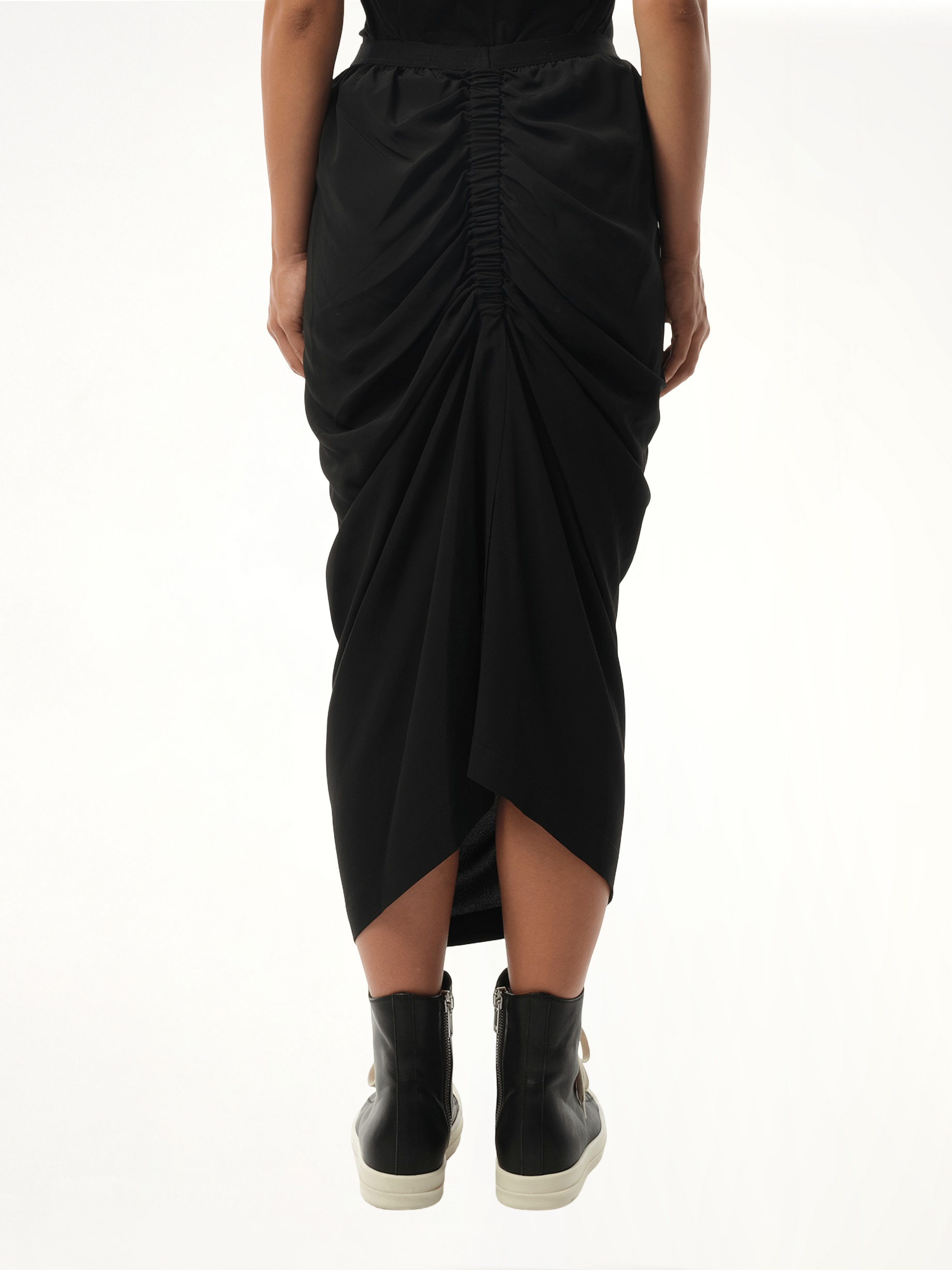 This luxurious material provides a structured yet lightweight feel for all-day comfort. With its sleek black color and elegant design, this skirt is perfect for any occasion. Its versatile and flattering fit is sure to make you feel confident and stylish.