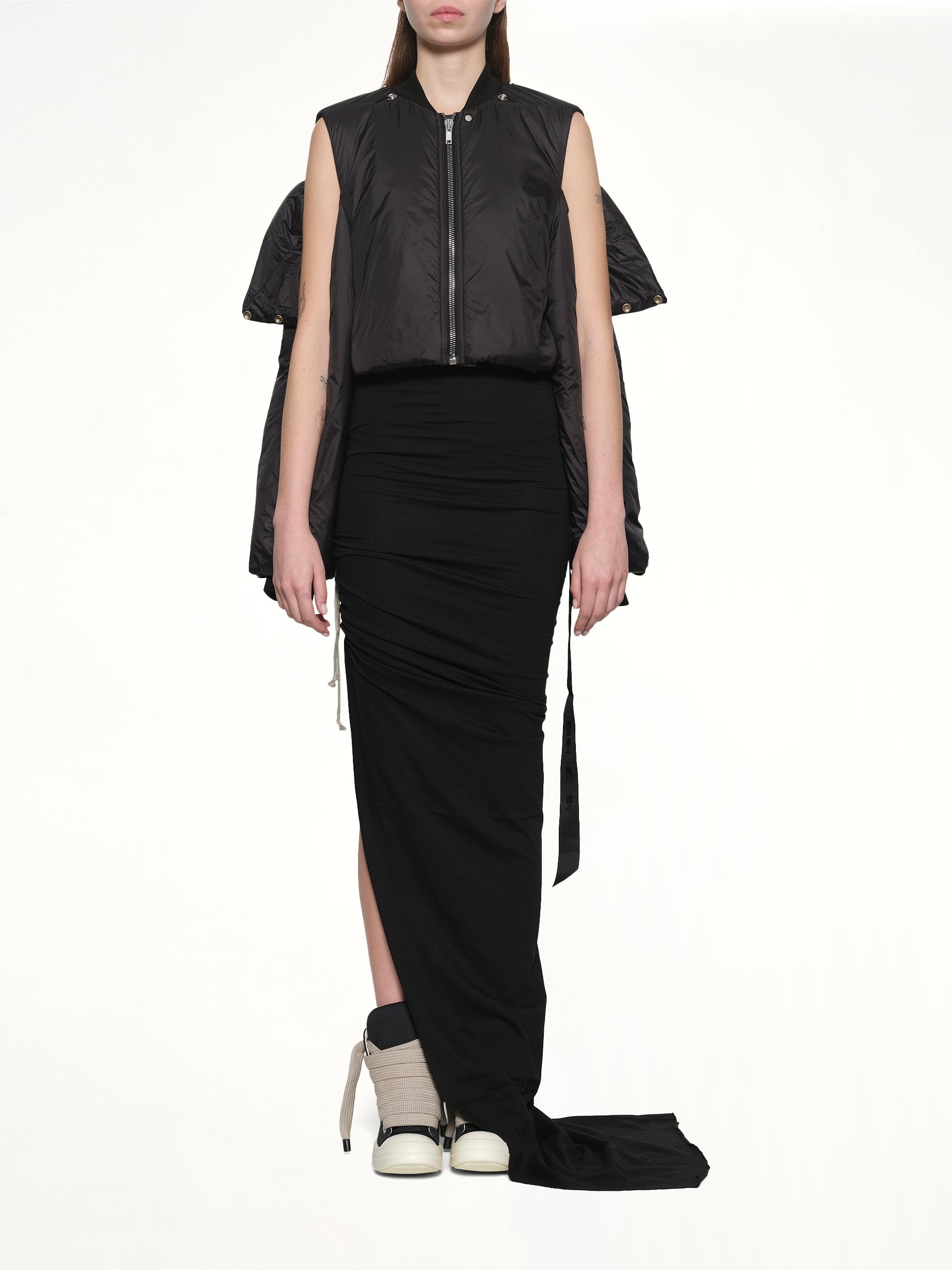 DRKSHDW's Convertible Padded Jacket in Black is a versatile outerwear piece designed for both style and functionality. This jacket offers a modern silhouette with practical features for everyday wear.