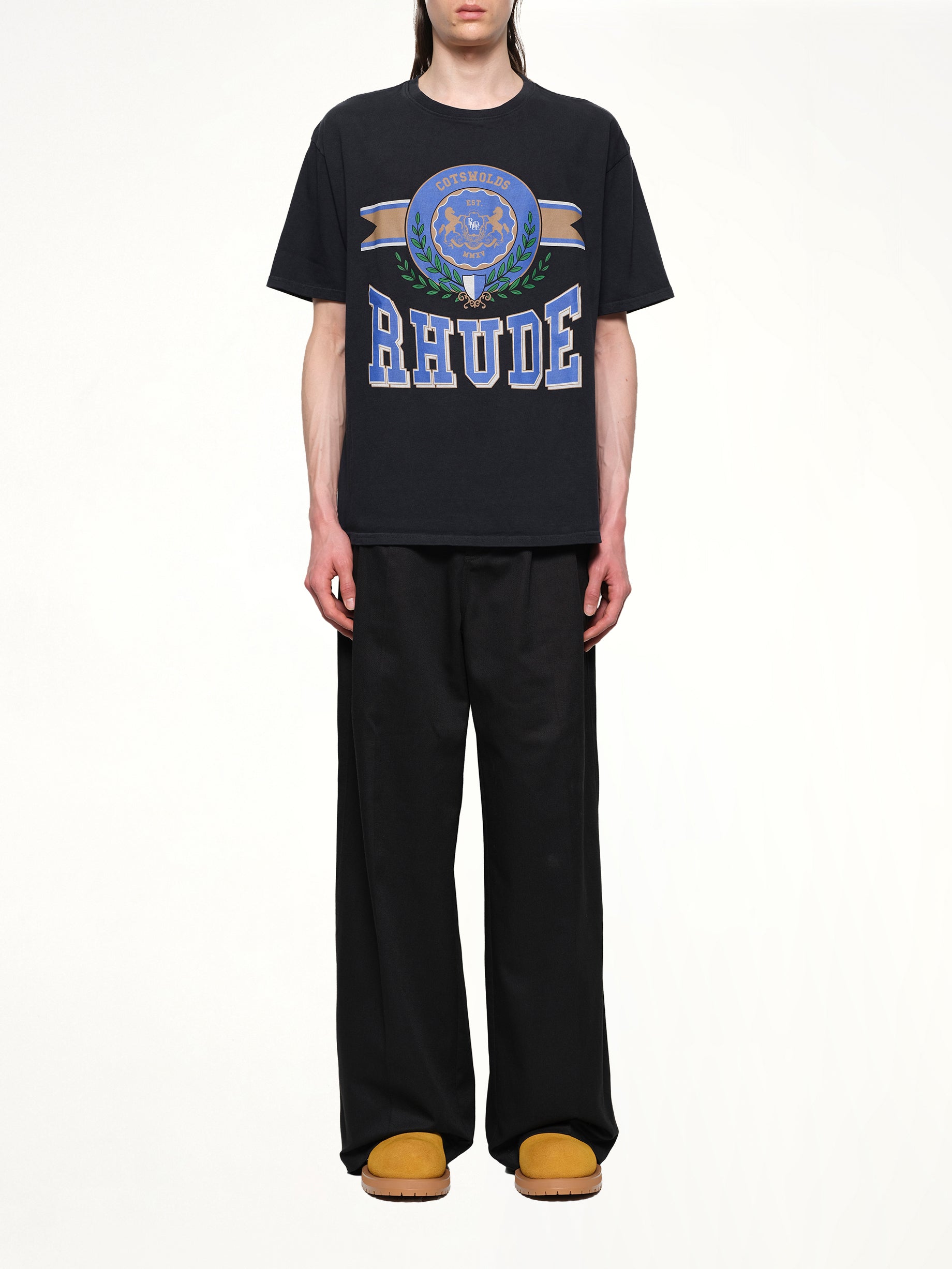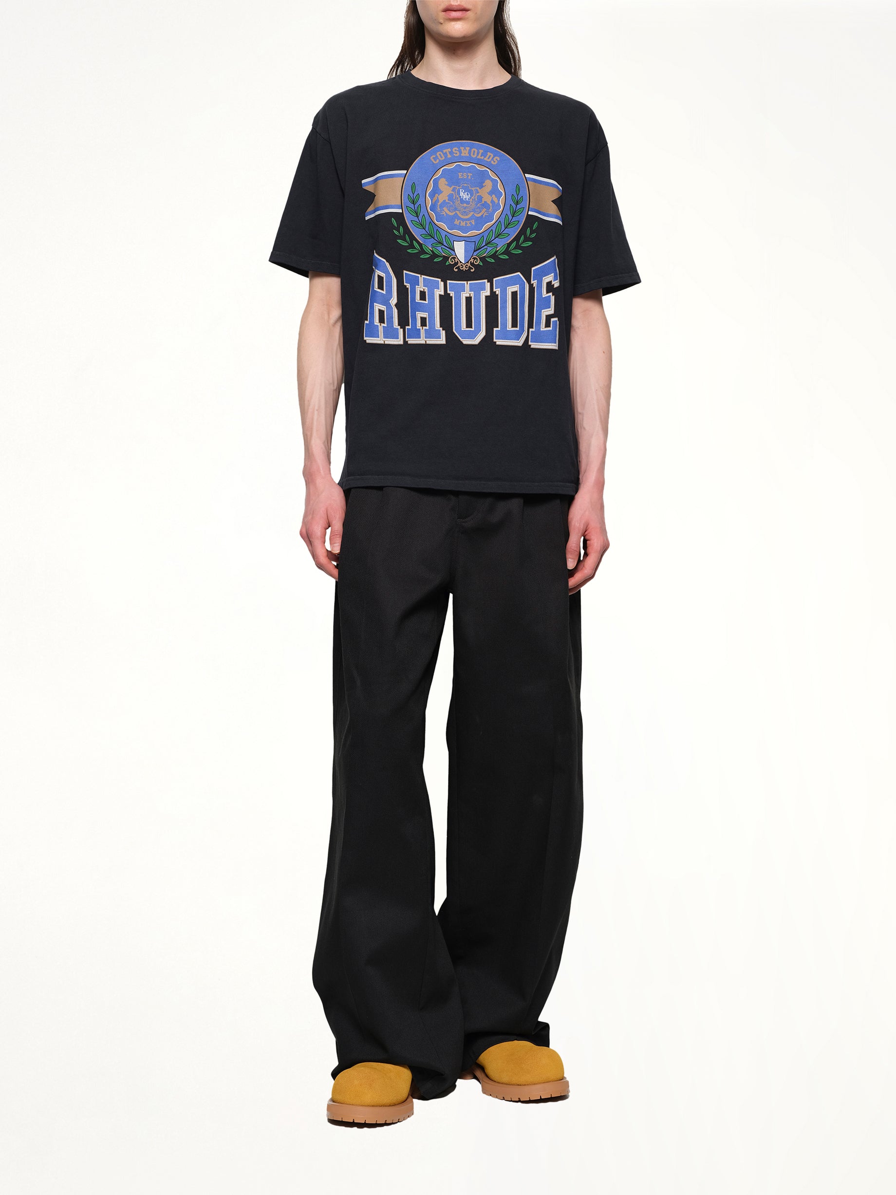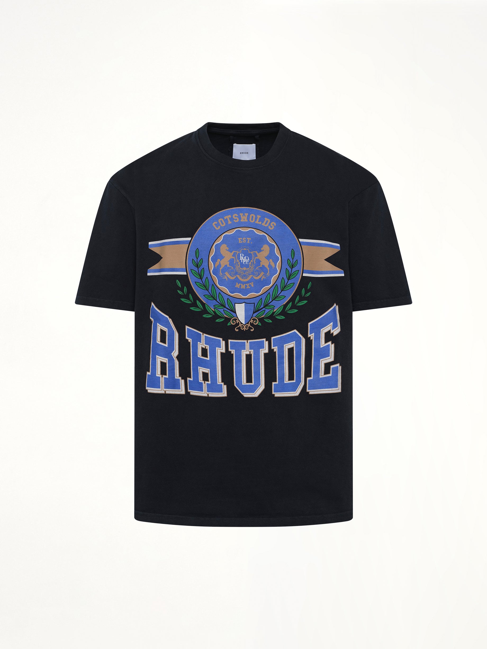 Rhude's Cotswold Crest T-Shirt in Vintage Black is a stylish and versatile piece that effortlessly combines comfort with a touch of sophistication. Perfect for casual outings or layering, this t-shirt features a unique crest design that adds a distinctive flair to your wardrobe.