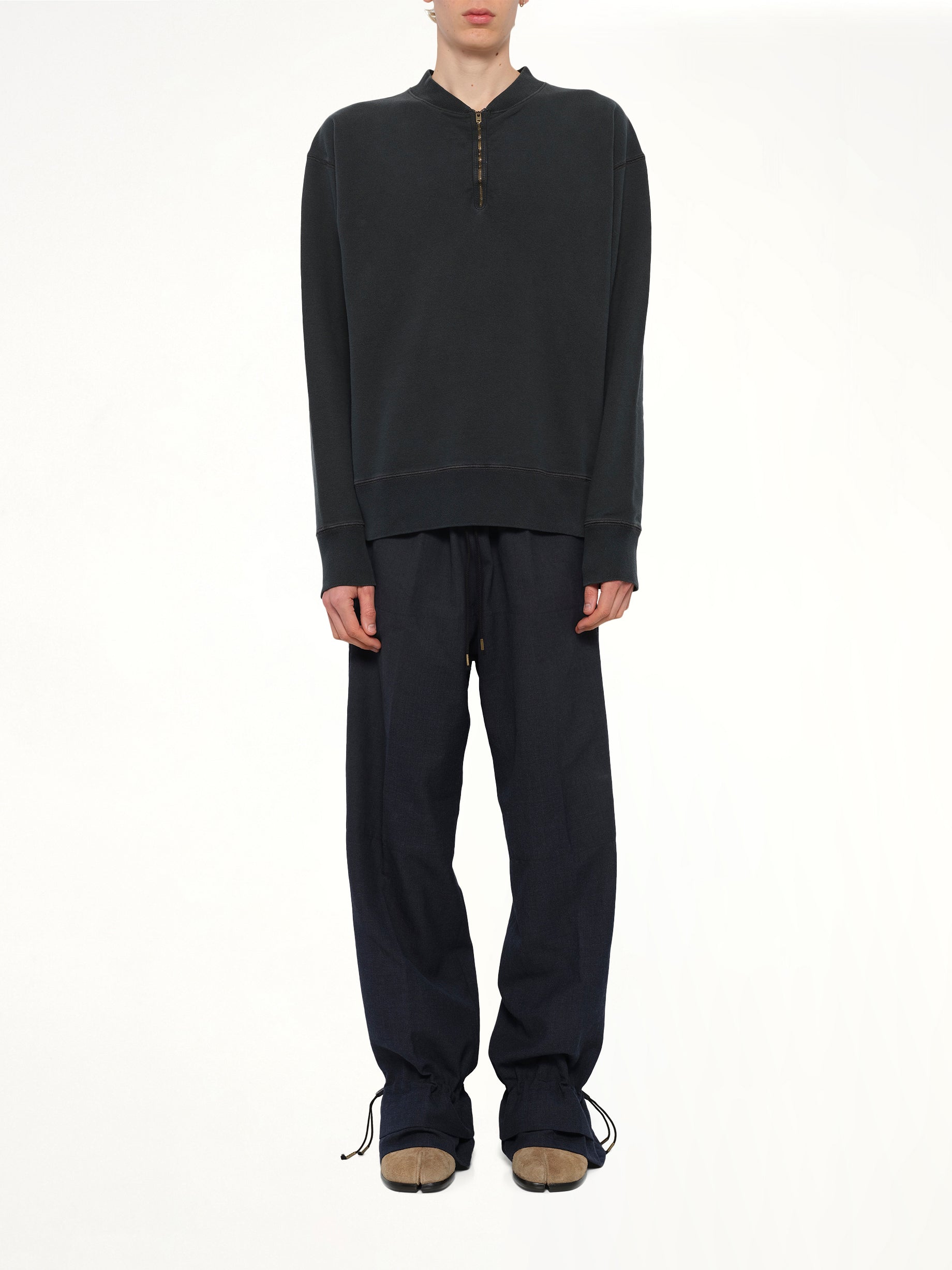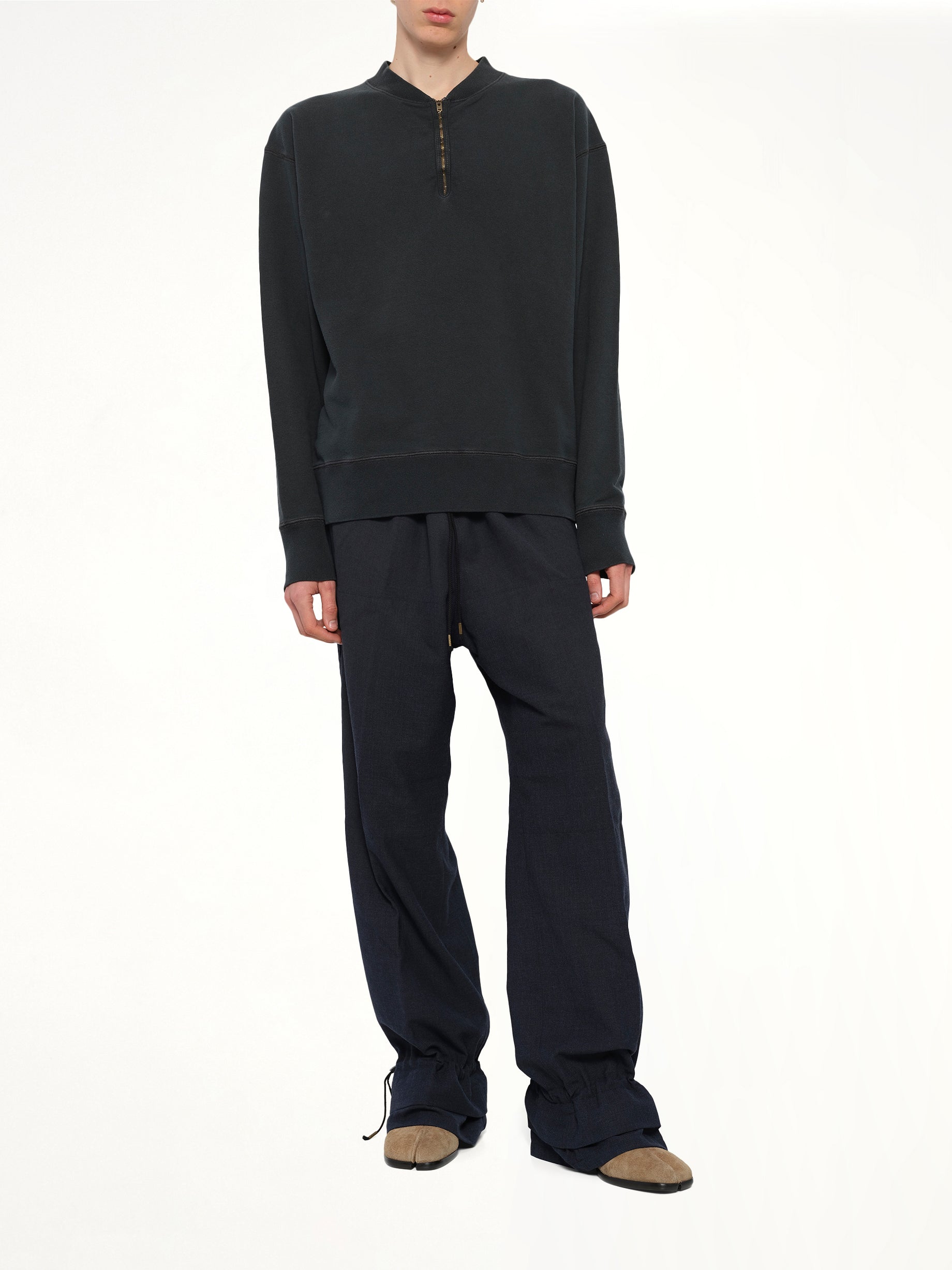 Maison Margiela's Cotton Fleece Zip Sweatshirt in Vintage Carbon is a versatile and stylish addition to any wardrobe. This sweatshirt combines comfort with a modern aesthetic, making it perfect for casual outings or relaxed evenings.