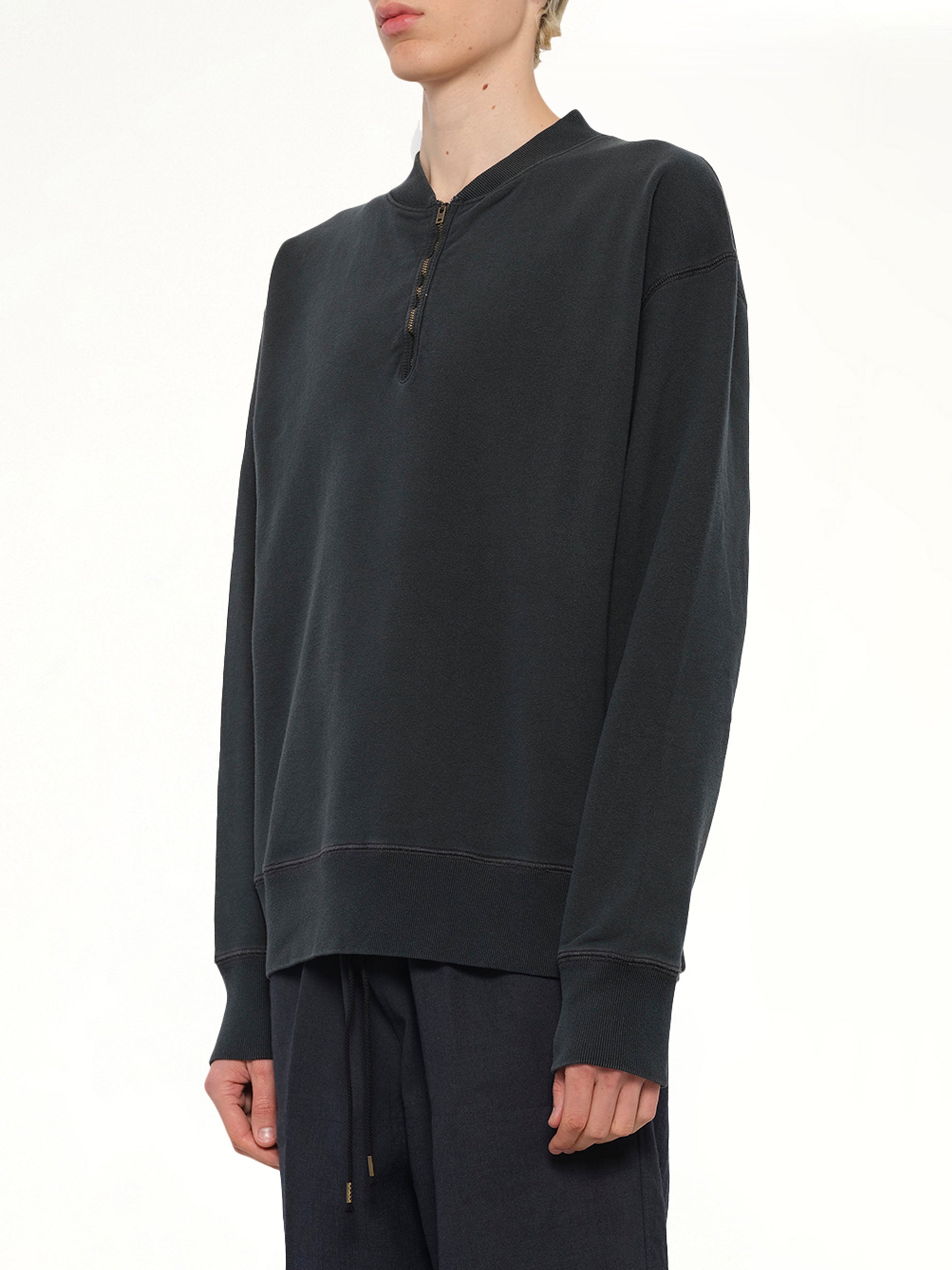 Cotton Fleece Zip Sweatshirt in Vintage Carbon