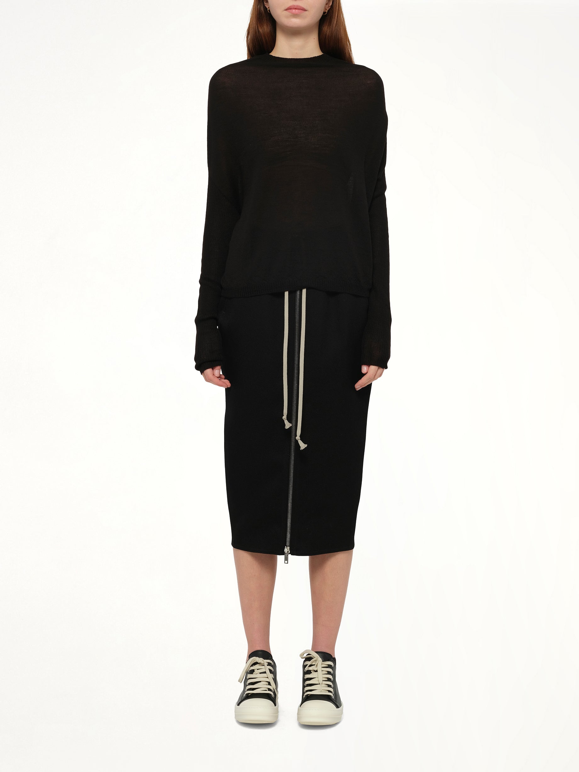 Rick Owens's Crater Knit in Black is a striking piece that embodies the designer's avant-garde aesthetic. This knitwear offers a unique silhouette, perfect for those who appreciate bold fashion statements.