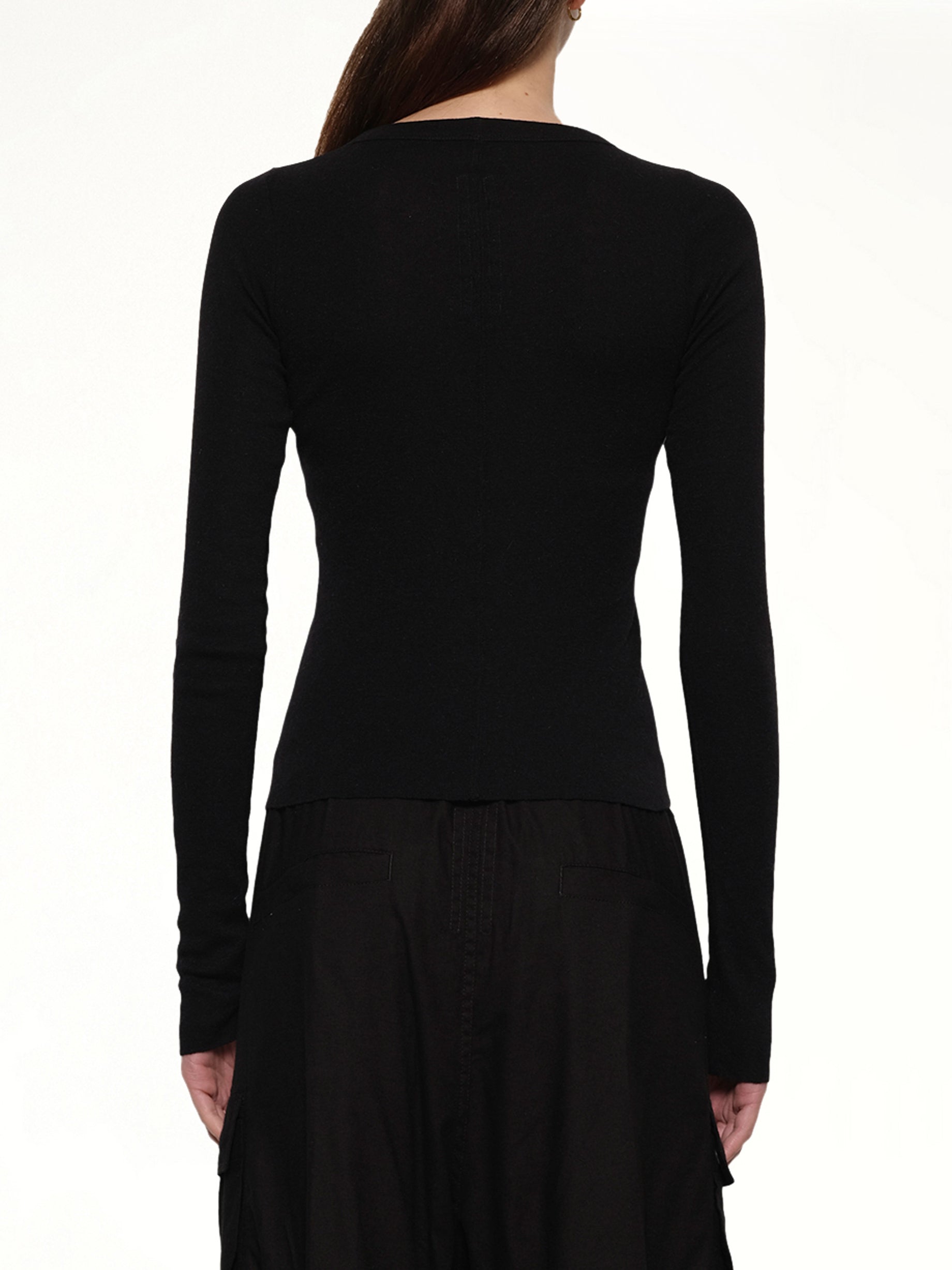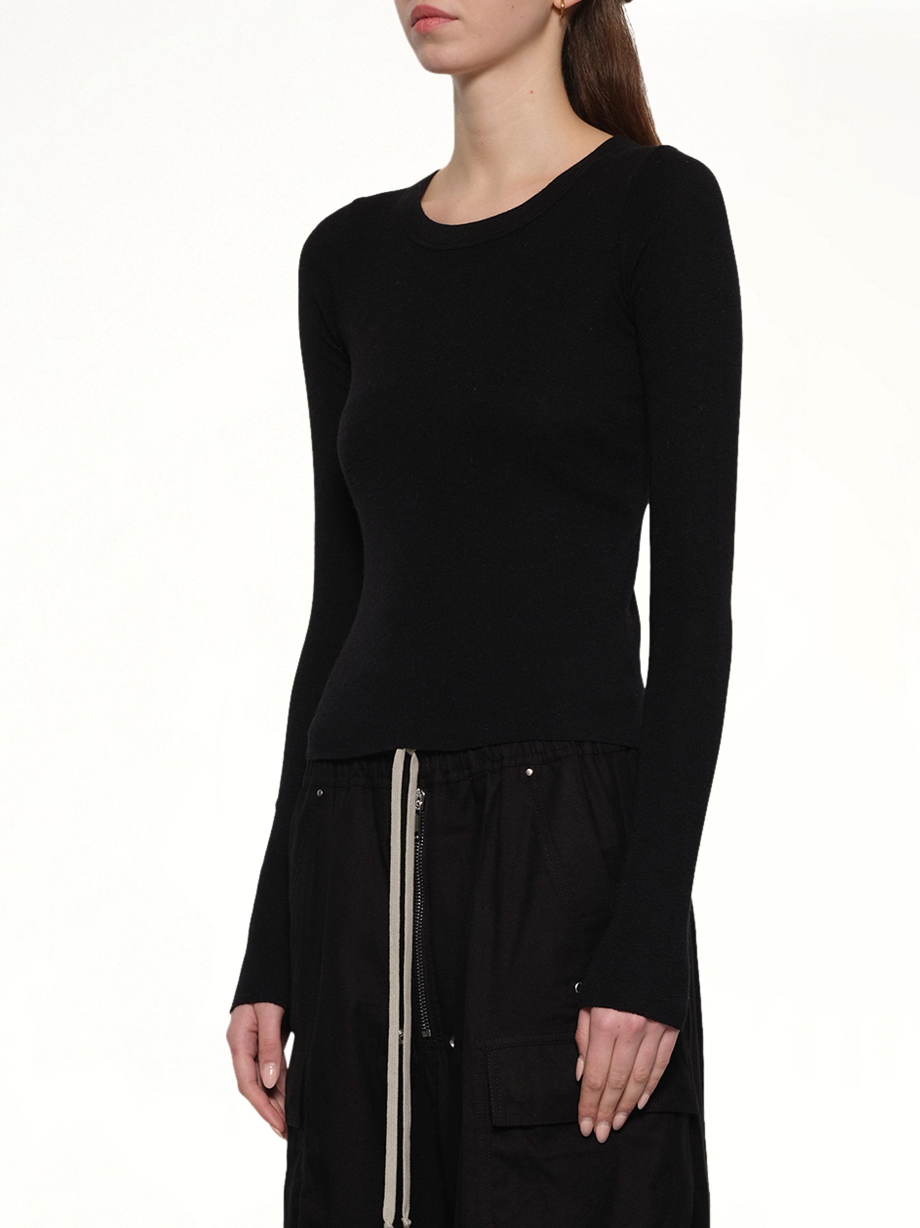 Rick Owens's Cropped Rib Long Sleeve T in Black is a sleek and versatile piece that adds a touch of modern edge to any wardrobe. Its cropped design and ribbed texture offer a flattering fit and contemporary style.