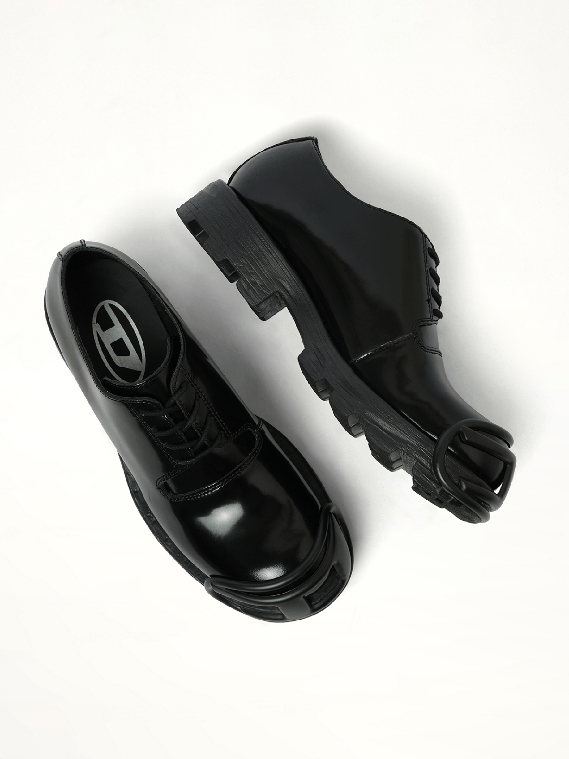 Diesel's D-HAMMER Derby in Black is a sleek and modern footwear choice for any occasion. Designed with a contemporary edge, these shoes offer both style and comfort.