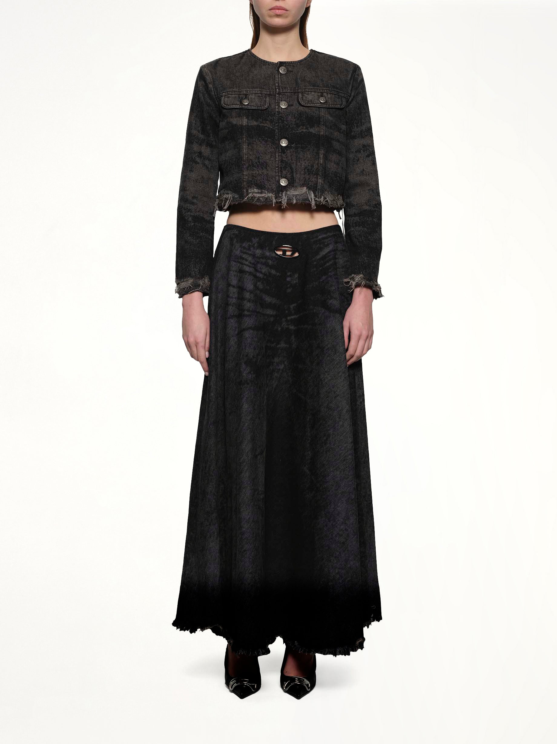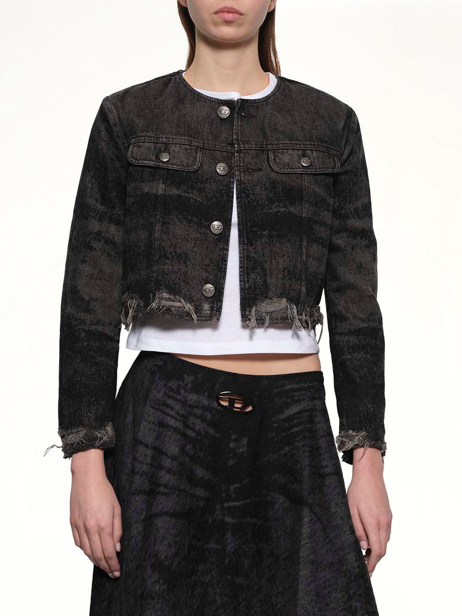 Diesel's DE-GRAFFY-FSH Denim Jacket in Black is a stylish and versatile piece that adds an edgy touch to any outfit. Perfect for both casual and semi-formal occasions, this jacket is a must-have for fashion-forward individuals.