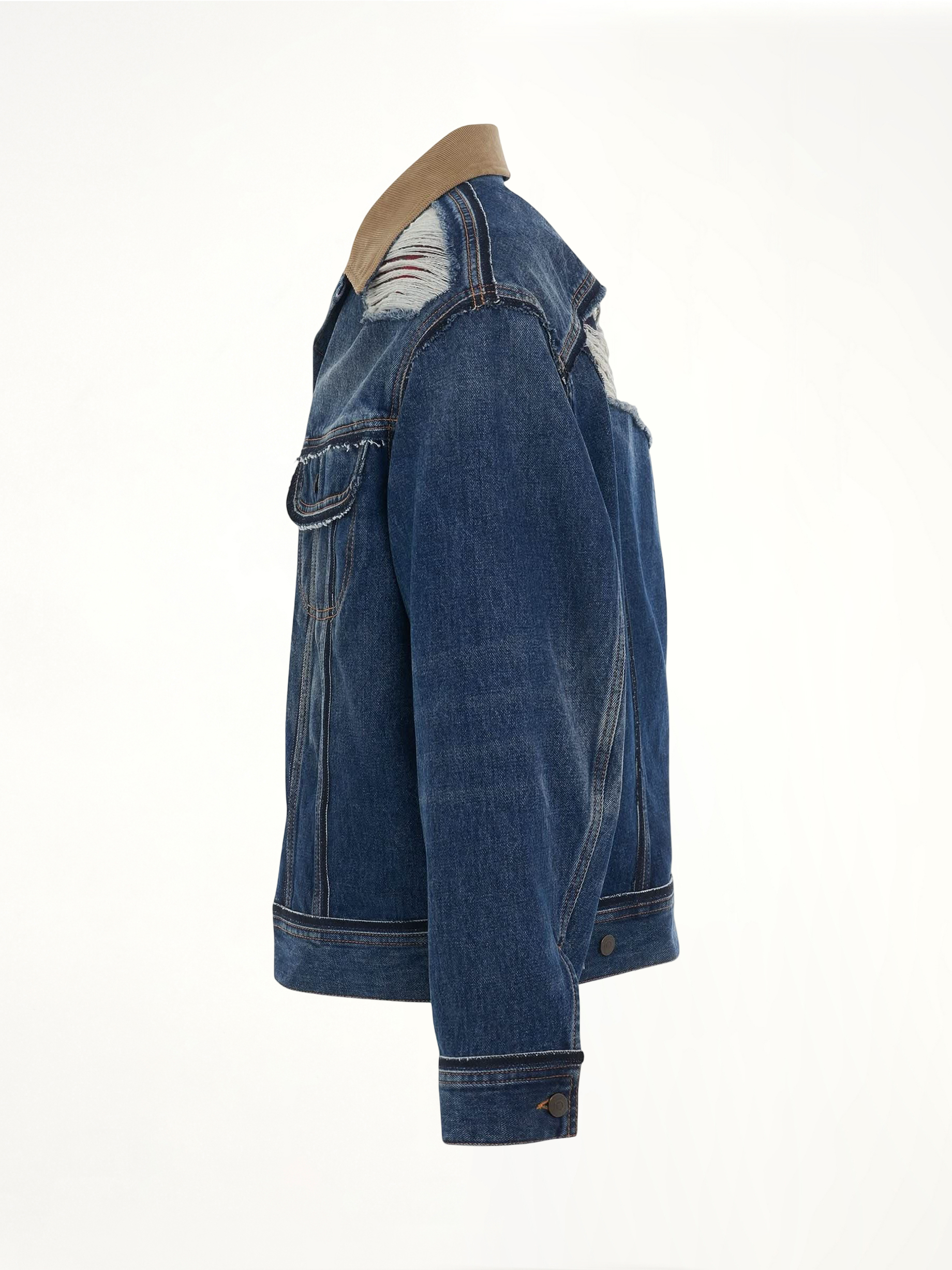Deconstruction Cut-Out Denim Jacket in Indigo