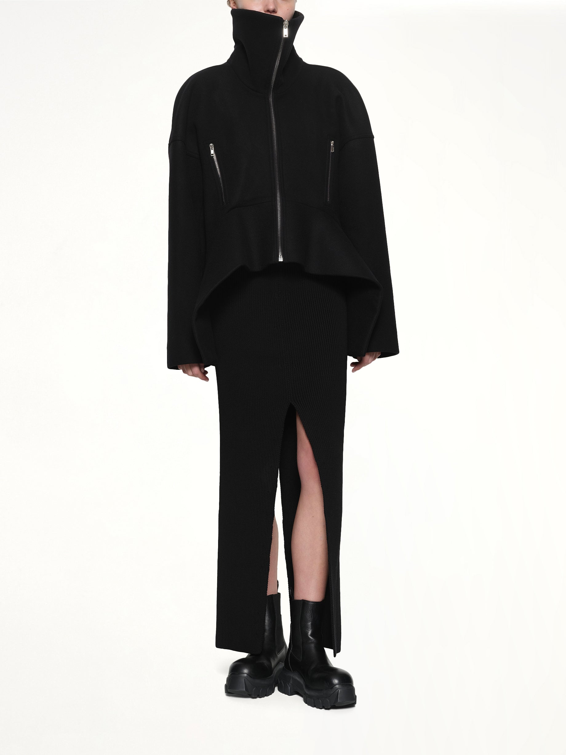 Rick Owens's Draculimo in Black is a striking piece that embodies the designer's signature avant-garde aesthetic. This item combines bold design elements with a sleek, modern silhouette.