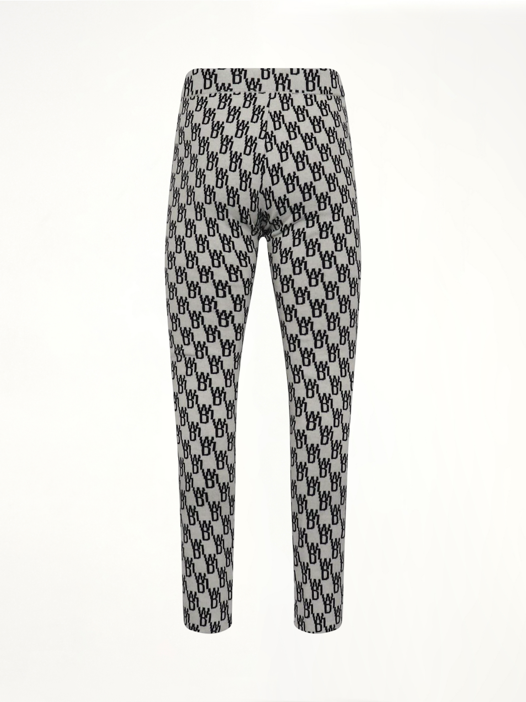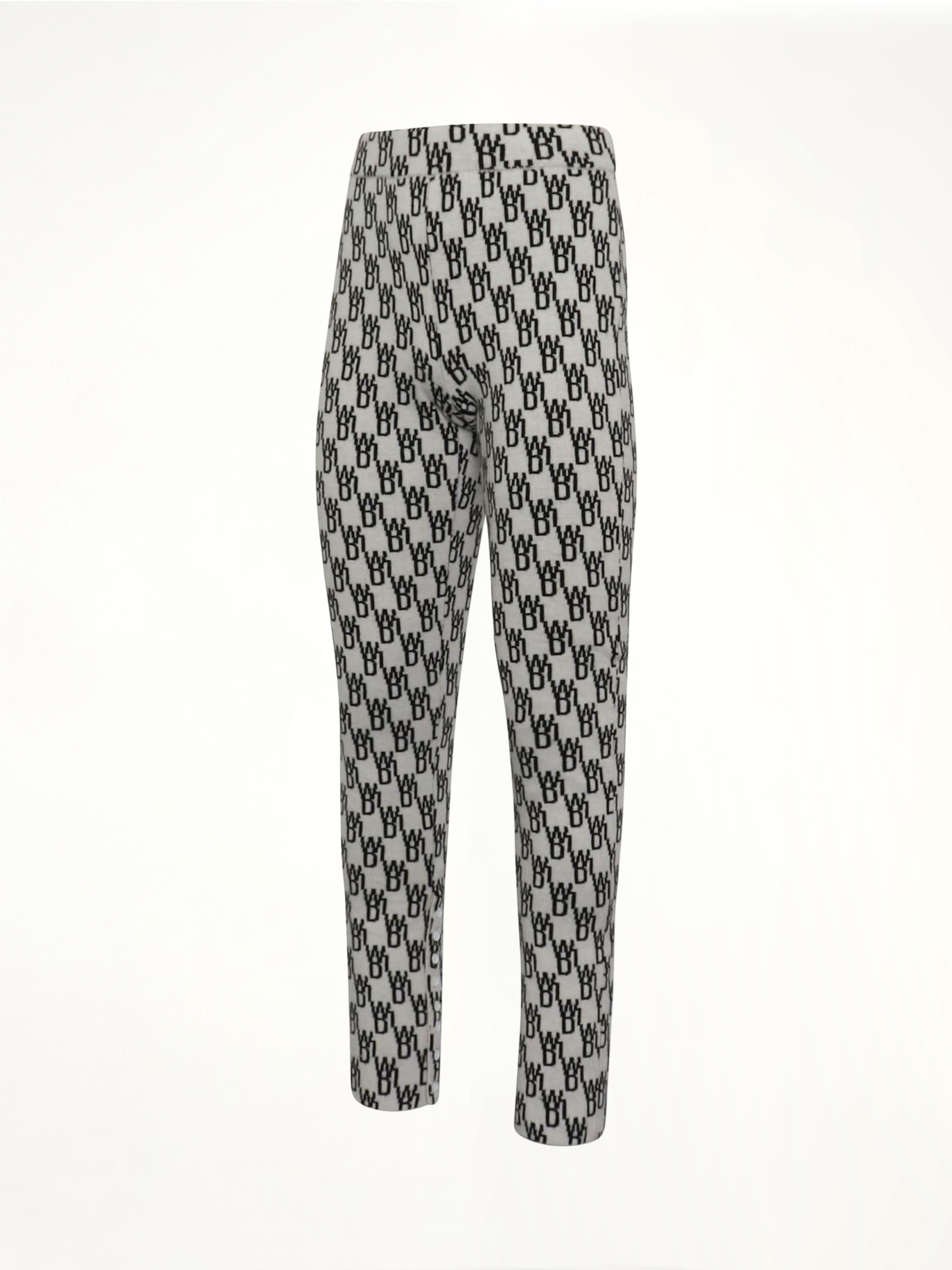 Fitted Knit Side Open Jacquard Trouser in Ivory