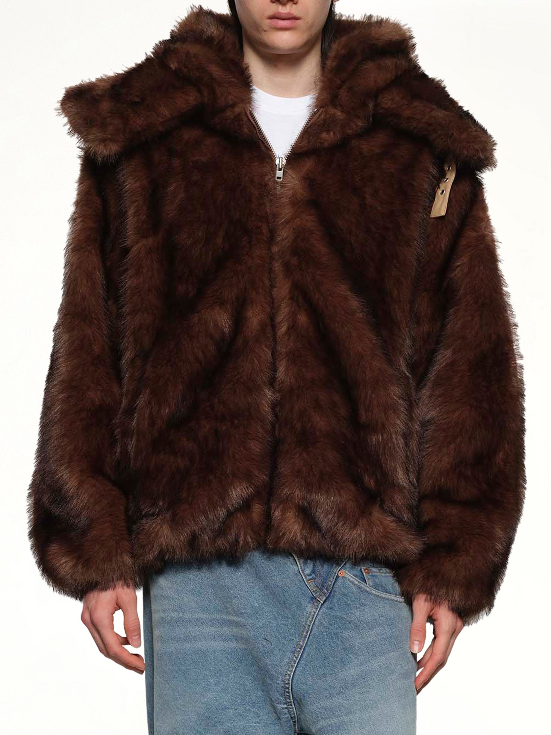 Fur Hoodie in Brown