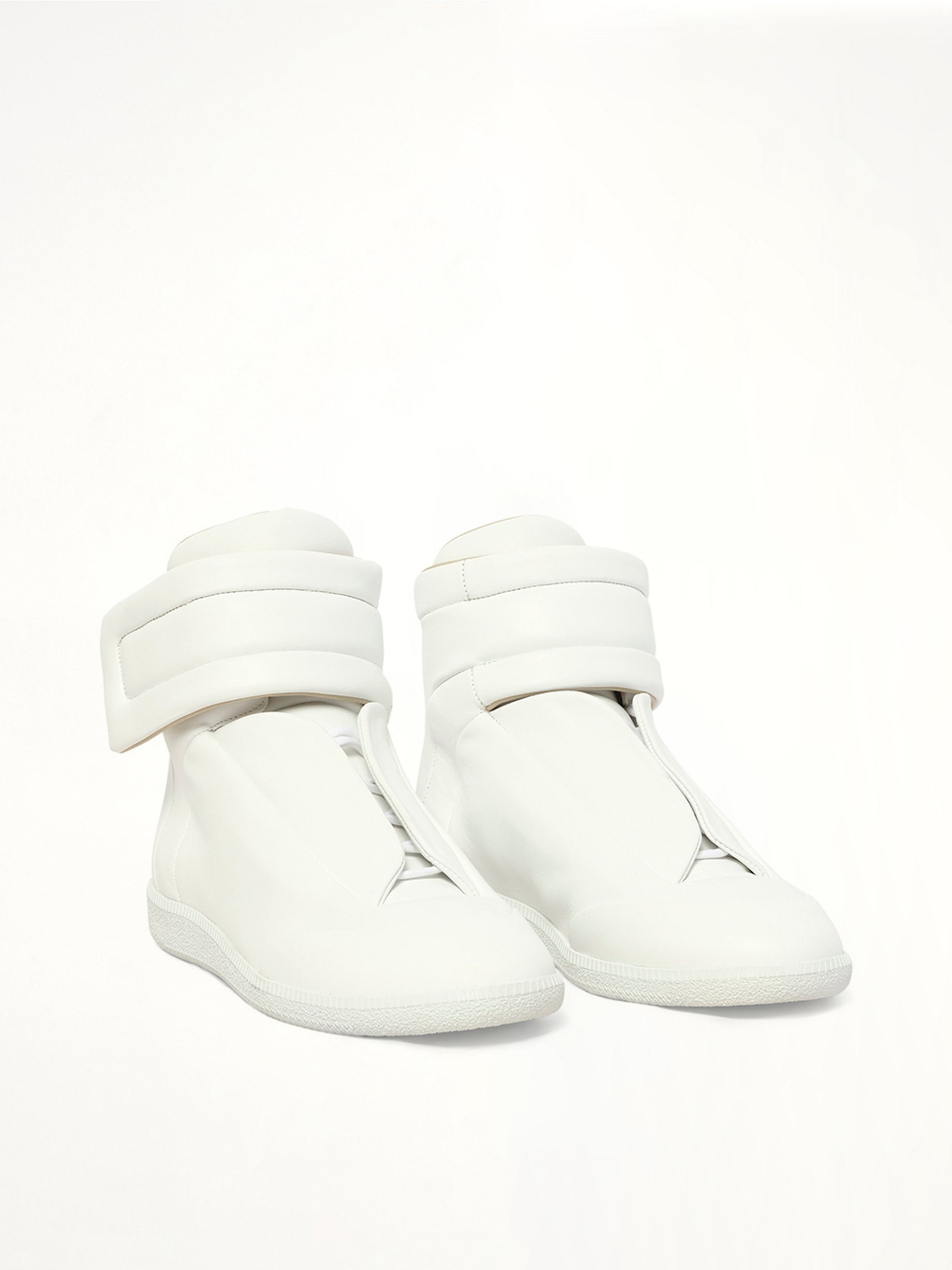 Maison Margiela's Future Mid-Top Sneaker in White is a sleek and modern footwear choice that embodies contemporary style. These sneakers offer a minimalist design with a futuristic edge, perfect for elevating any casual outfit.