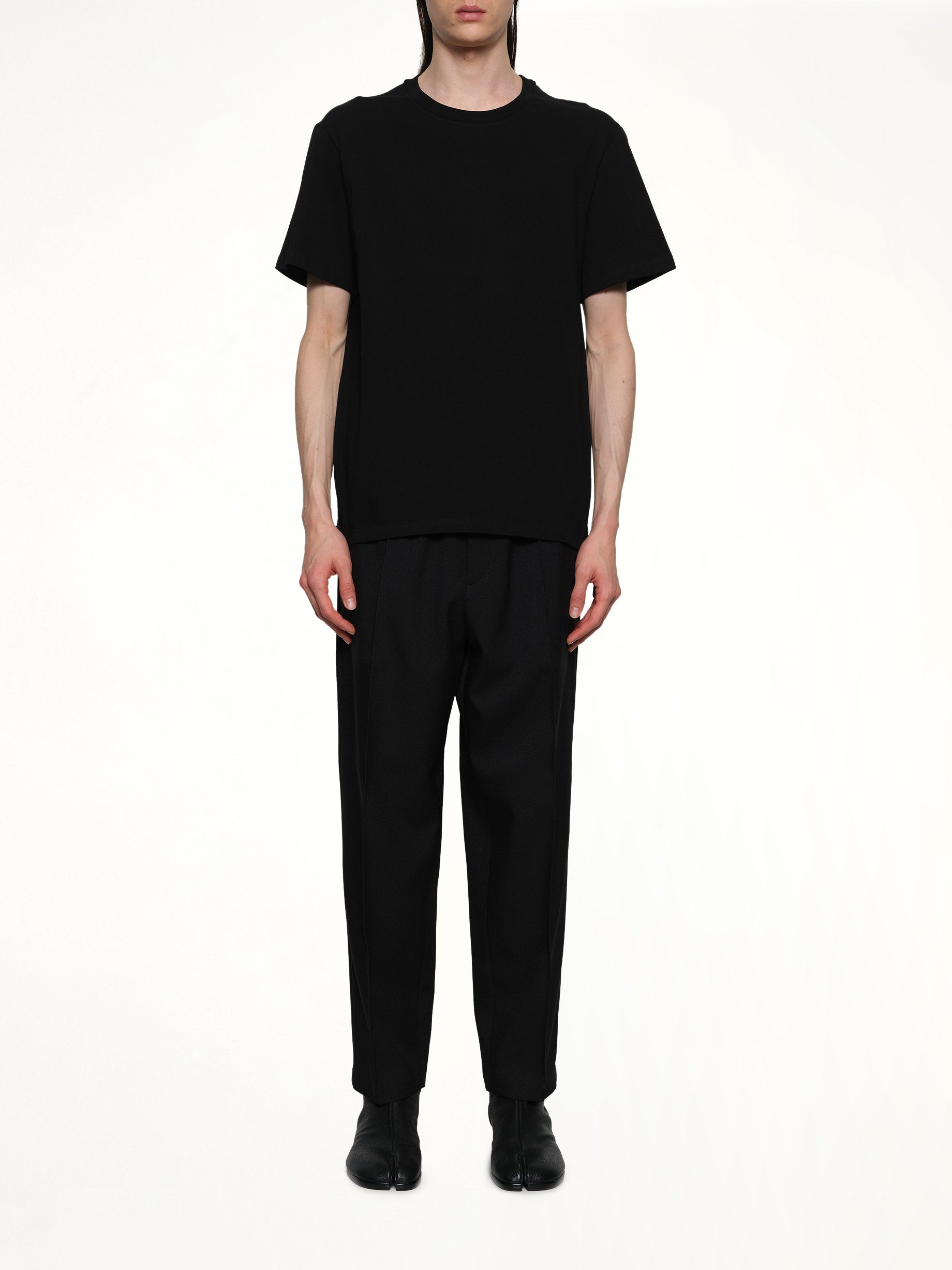 Jil Sander's Leather Patch T-Shirt in Black is a sophisticated blend of minimalism and modern design. This versatile piece is perfect for elevating your casual wardrobe with a touch of luxury.
