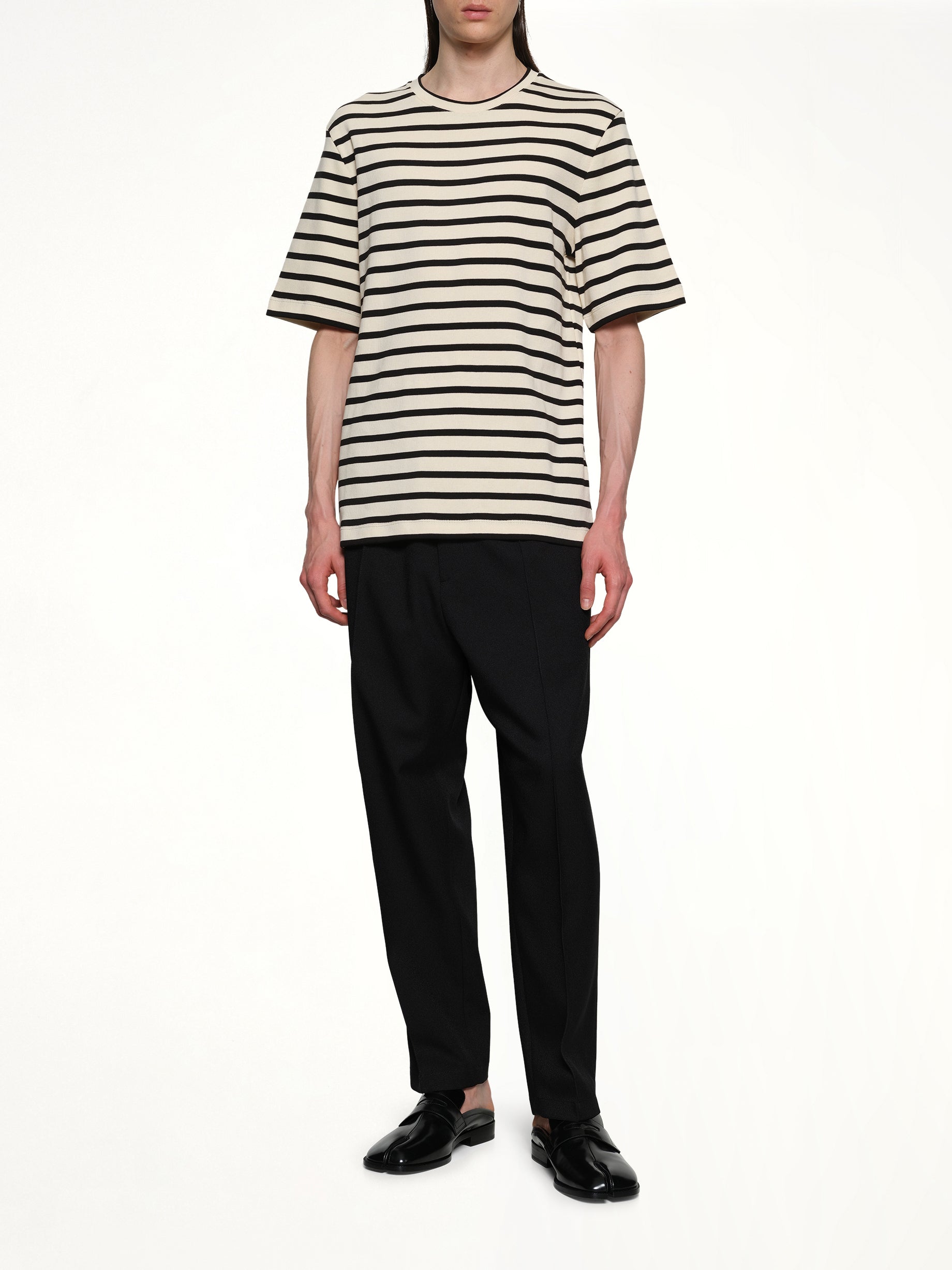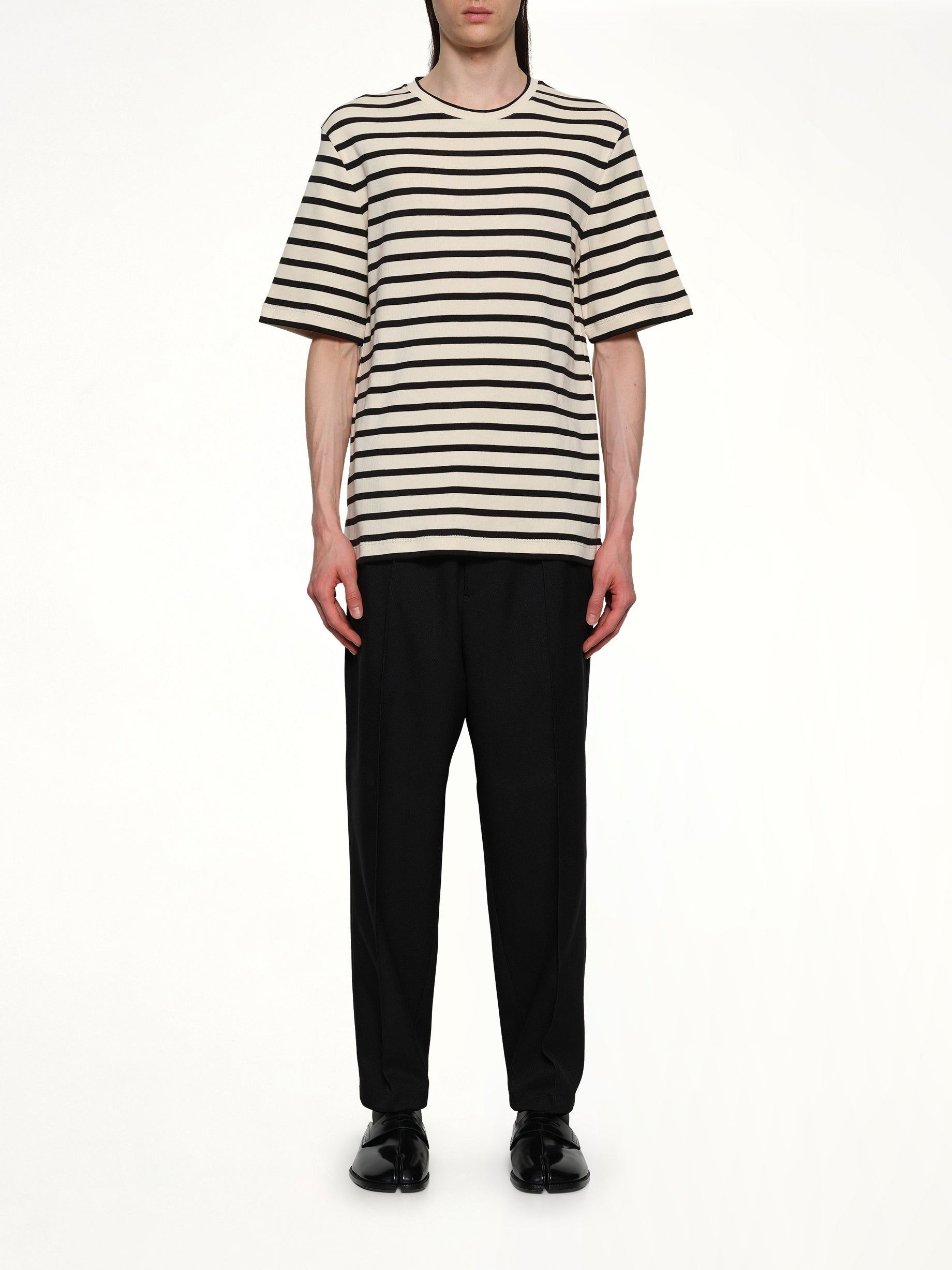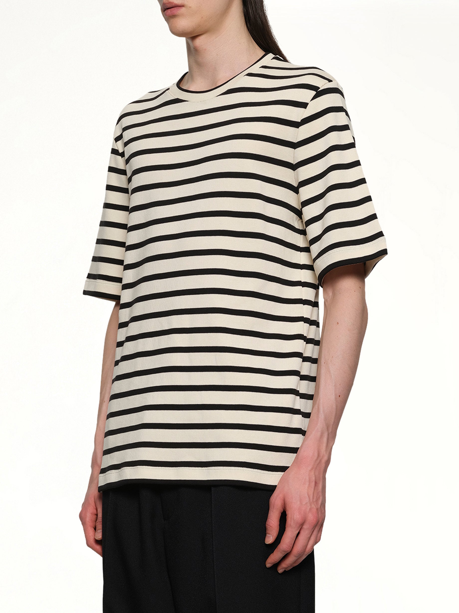 Jil Sander's Stripe T-Shirt in Bluejay is a stylish and versatile addition to any wardrobe. This t-shirt combines a classic stripe pattern with a modern color palette, making it perfect for both casual and semi-formal occasions.