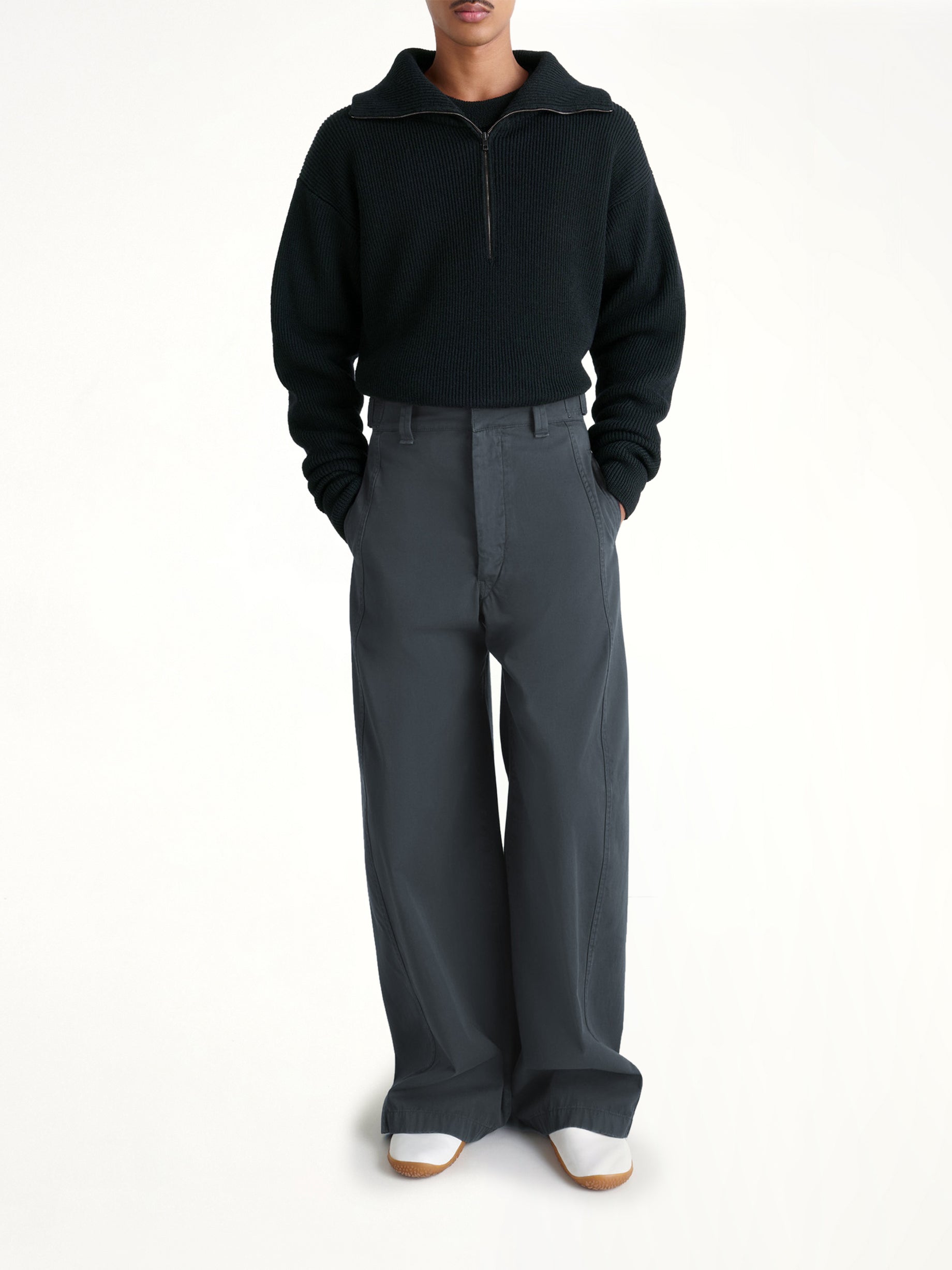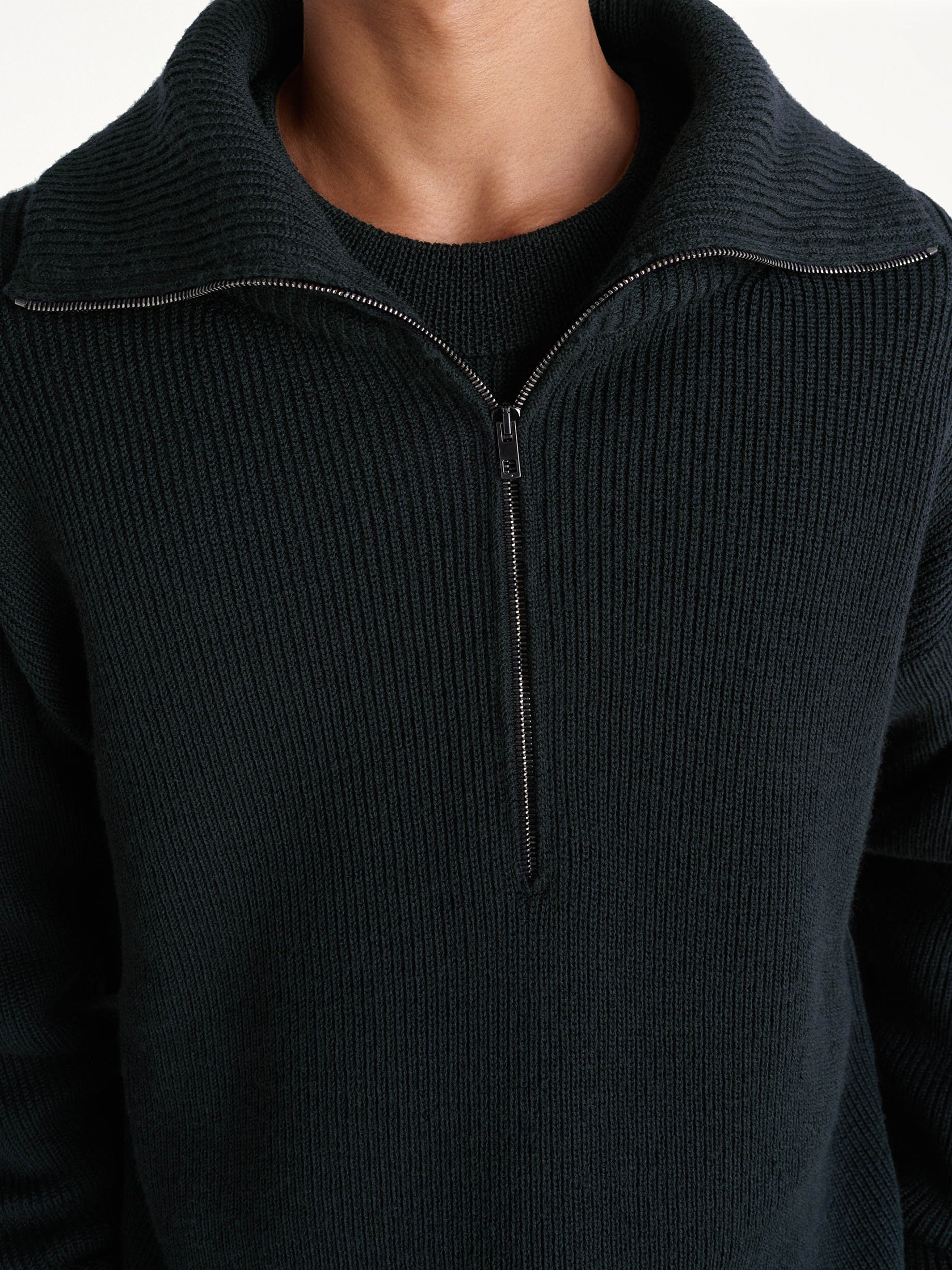 Lemaire's Half Zip Sweater in Black is a versatile and stylish addition to any wardrobe. This sweater combines modern design with classic elements for a timeless look.