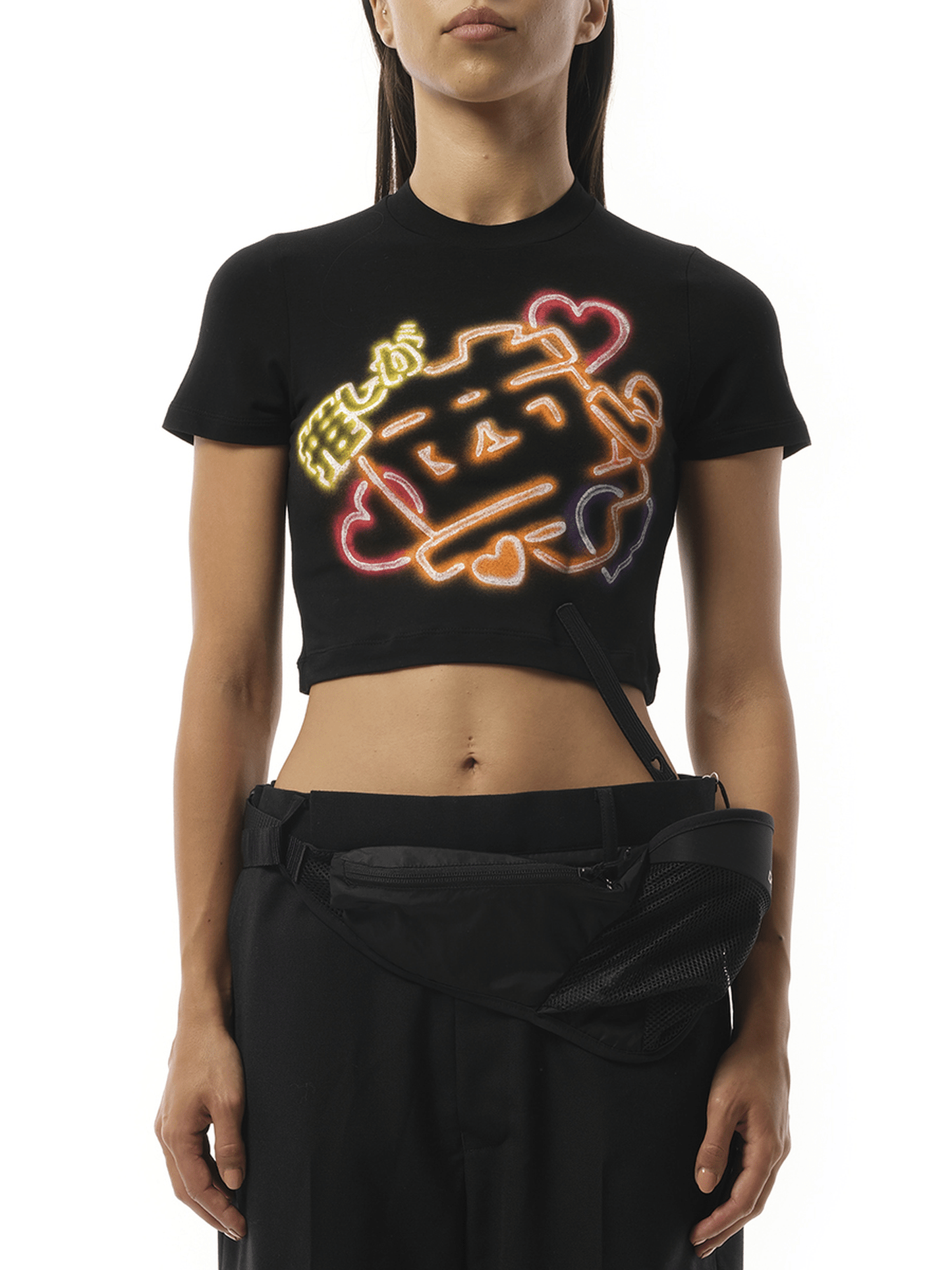 Japanese Fan-Service Neon Paint T-Shirt in Black