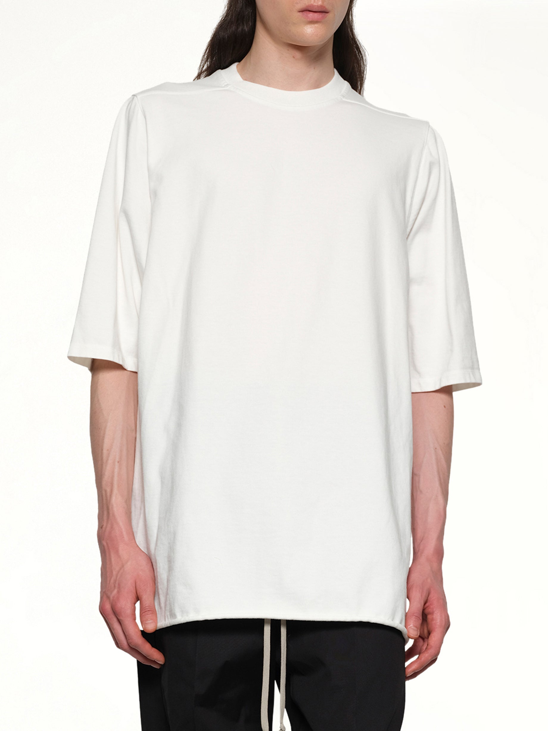 Rick Owens's Jumbo T-Shirt in Milk is a statement piece that combines avant-garde design with everyday comfort. Its oversized silhouette and minimalist aesthetic make it a versatile addition to any wardrobe.