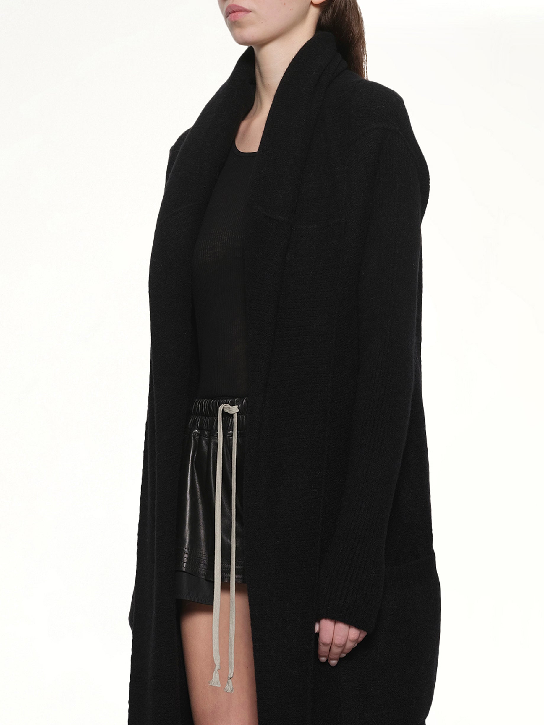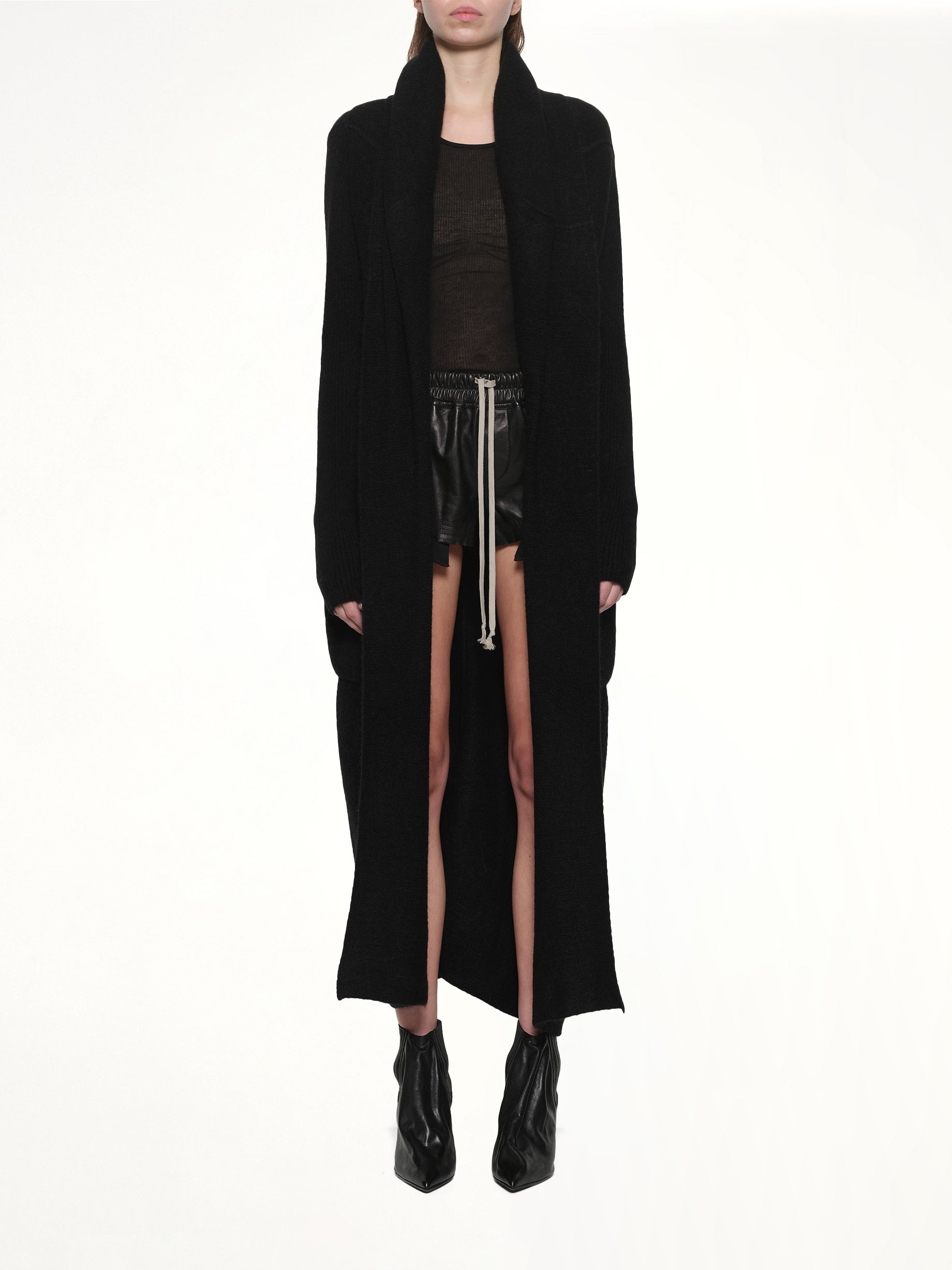 Rick Owens's Las Palmas Robe in Black is a striking piece that embodies the designer's signature avant-garde aesthetic. This robe offers a blend of comfort and style, making it a versatile addition to any wardrobe.