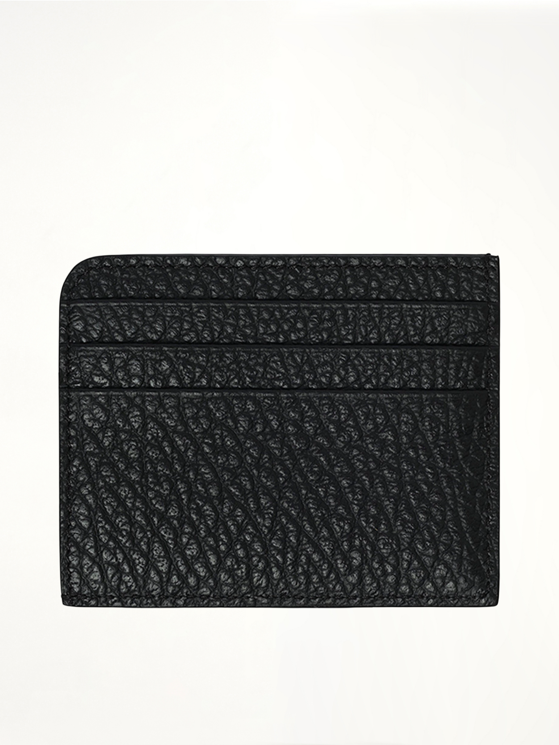 Four Stitches leather card holder in black with contrast stitching, card slots and grained texture