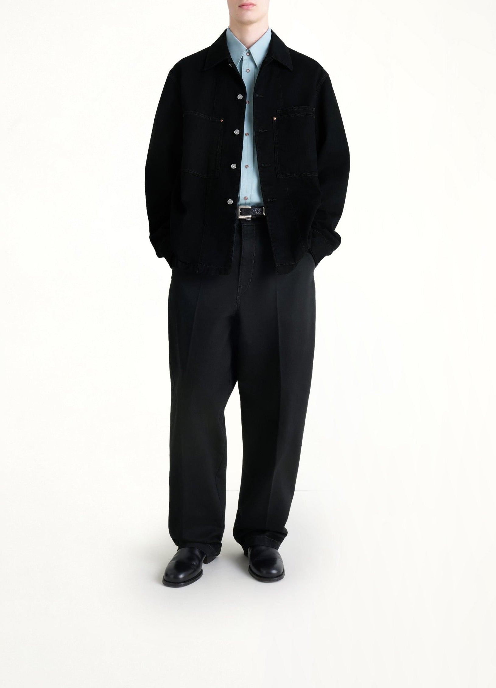 Lemaire's Workwear Overshirt in Black is a versatile and stylish addition to any wardrobe. Designed with a focus on functionality and modern aesthetics, this overshirt is perfect for layering or wearing on its own.