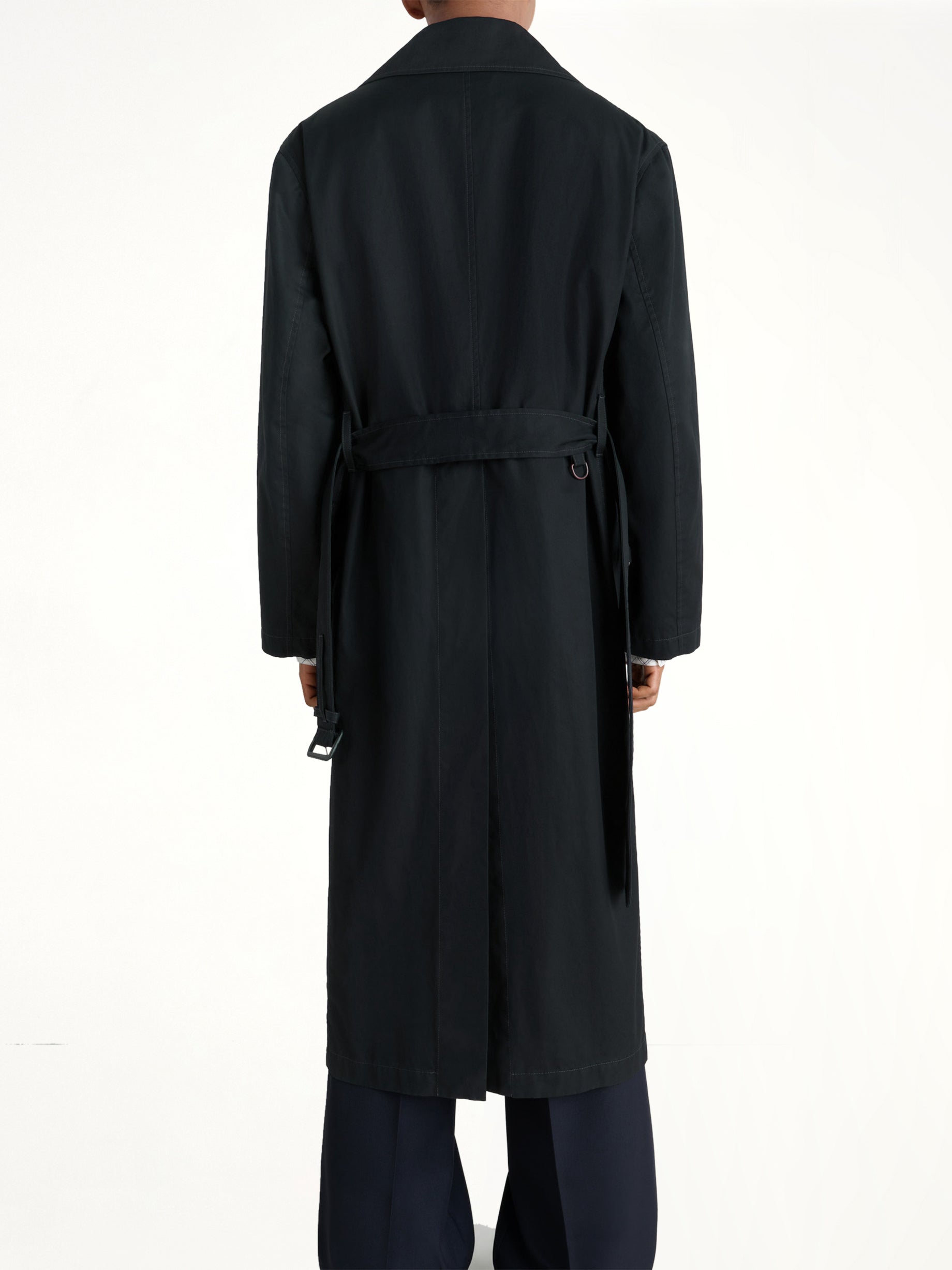 Lemaire's Light Trench Coat in Black is a sophisticated outerwear piece that combines timeless style with modern functionality. Its sleek design and versatile color make it a must-have for any wardrobe.
