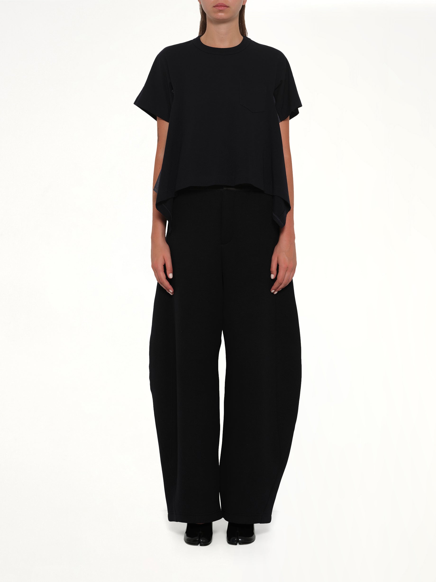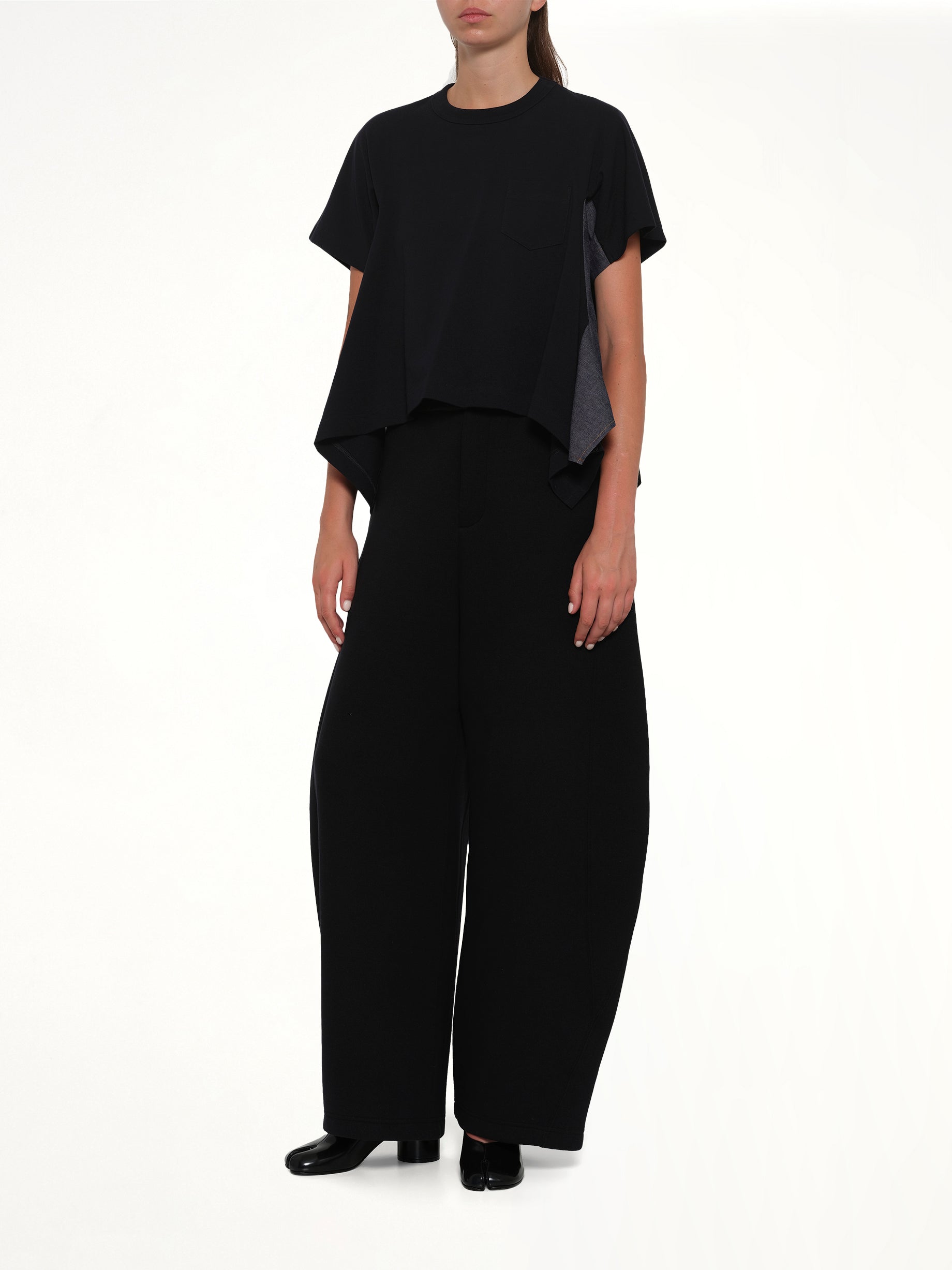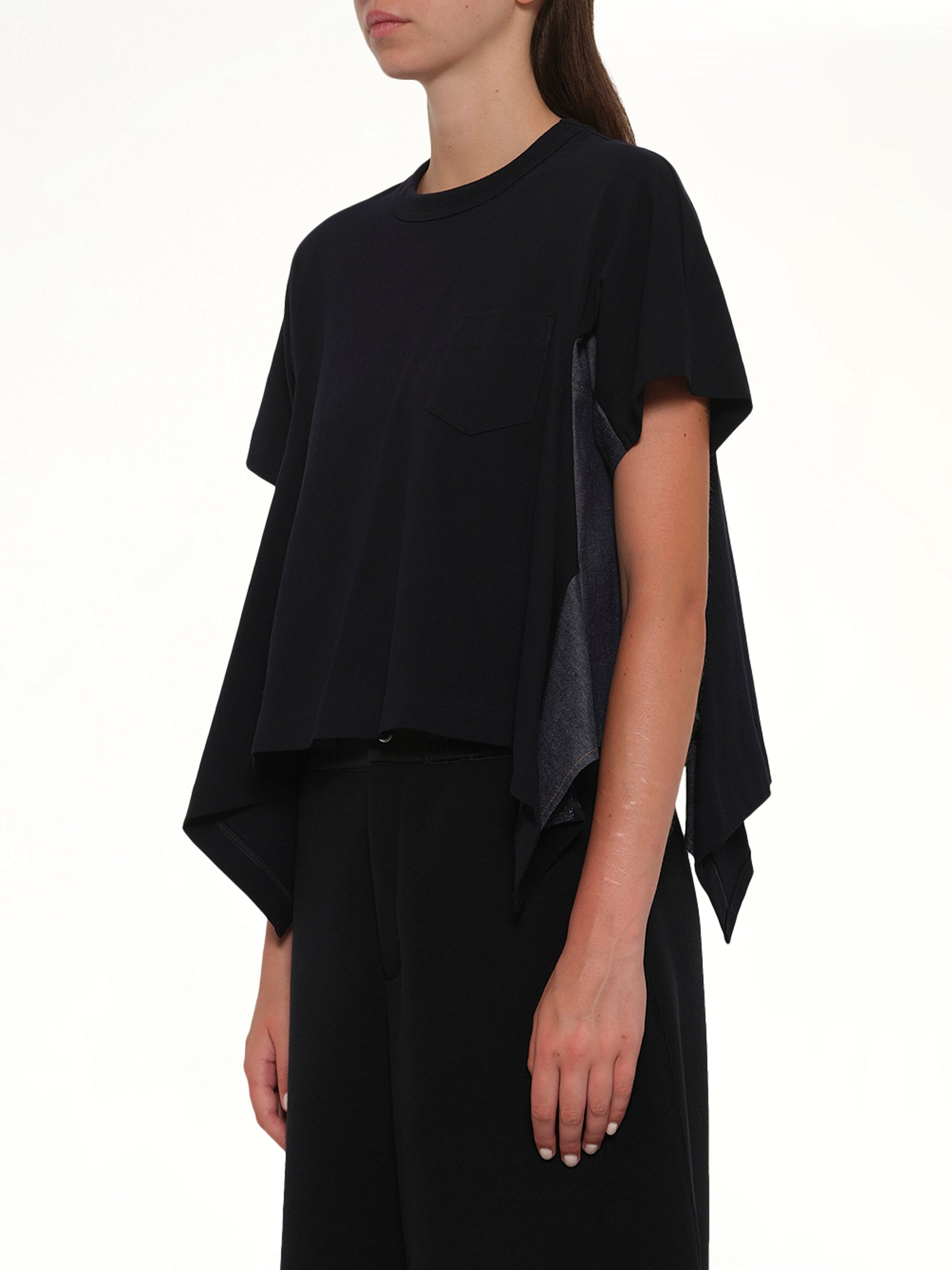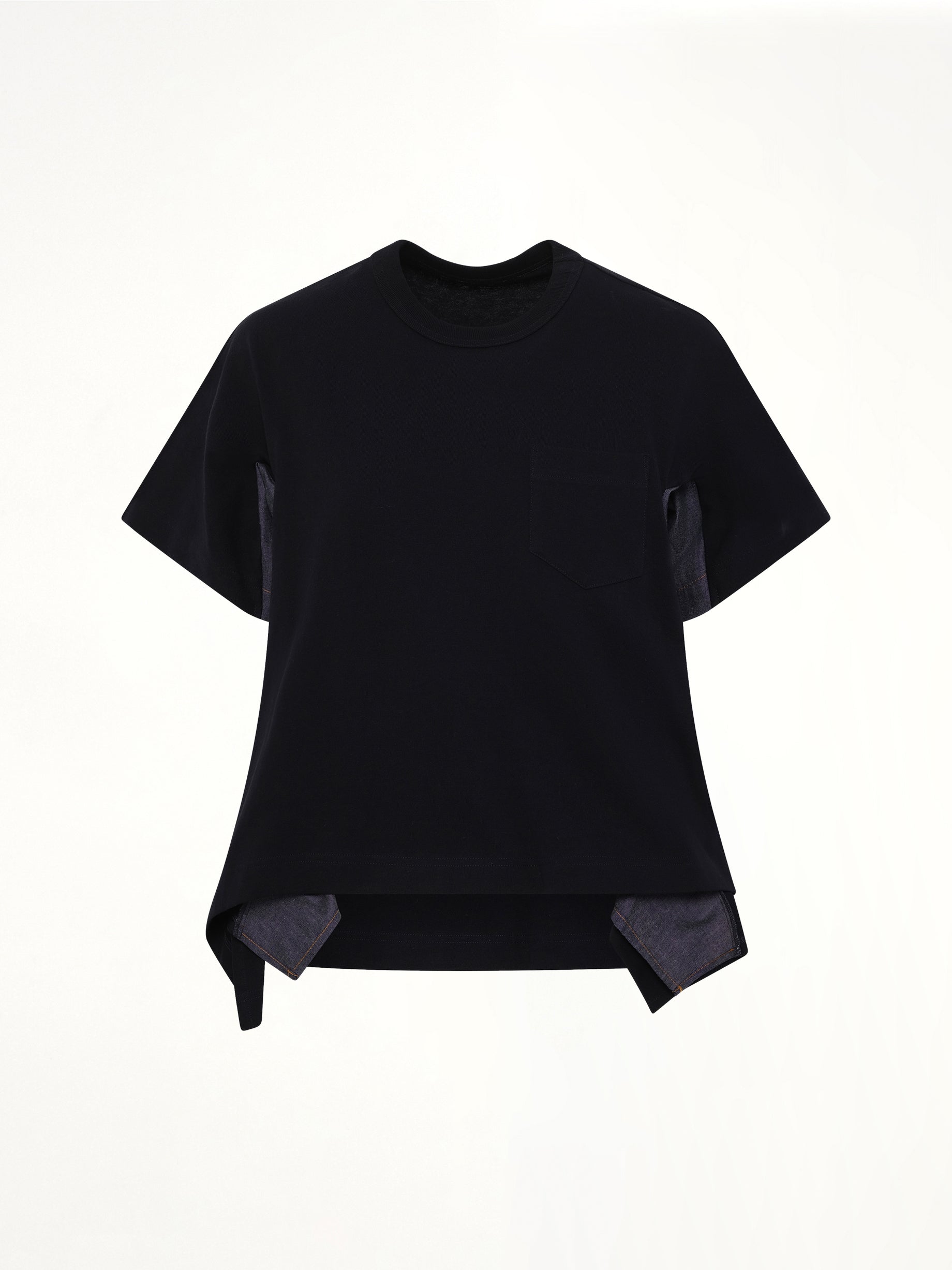Sacai's Light Weight Denim x Cotton Jersey T-Shirt in Navy/Blue is a versatile piece that combines casual comfort with a touch of sophistication. Perfect for any occasion, this t-shirt offers a unique blend of textures and style.