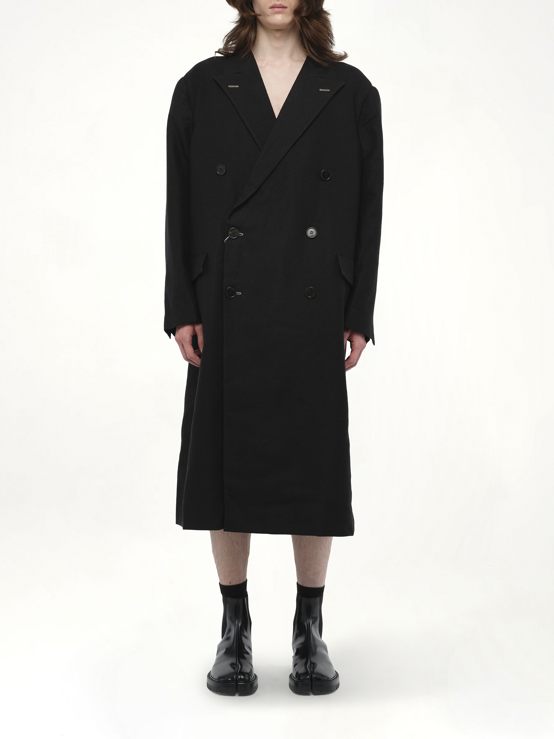 Maison Margiela's Long Coat in Black is a sophisticated piece that exudes timeless elegance and modern style. Perfect for any occasion, this coat is a must-have addition to your wardrobe.