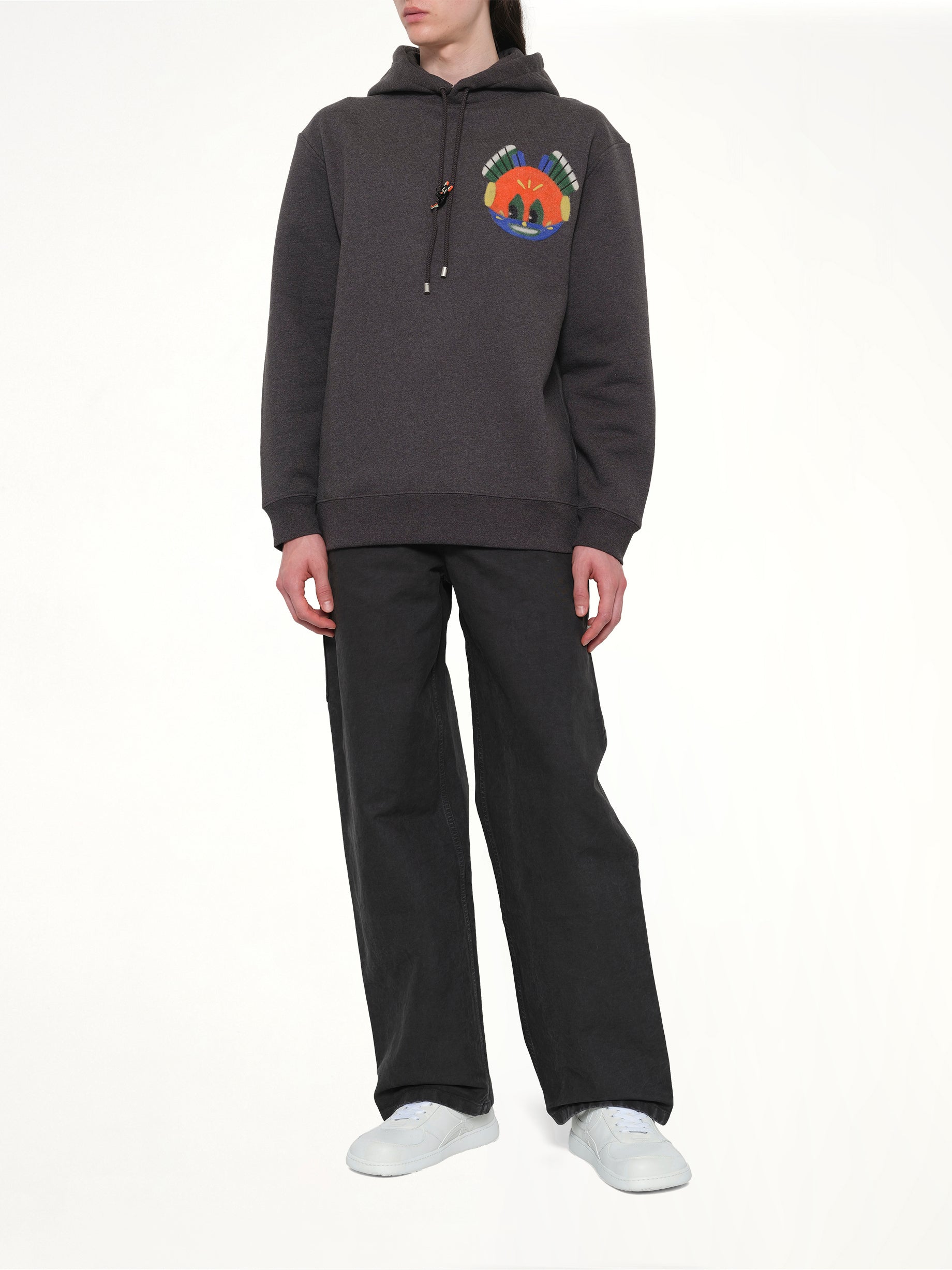 Loewe's Louis Wain Hoodie in Dark Grey Melange is a stylish and comfortable addition to any wardrobe. This hoodie features a unique design inspired by the iconic artist Louis Wain, known for his whimsical cat illustrations.