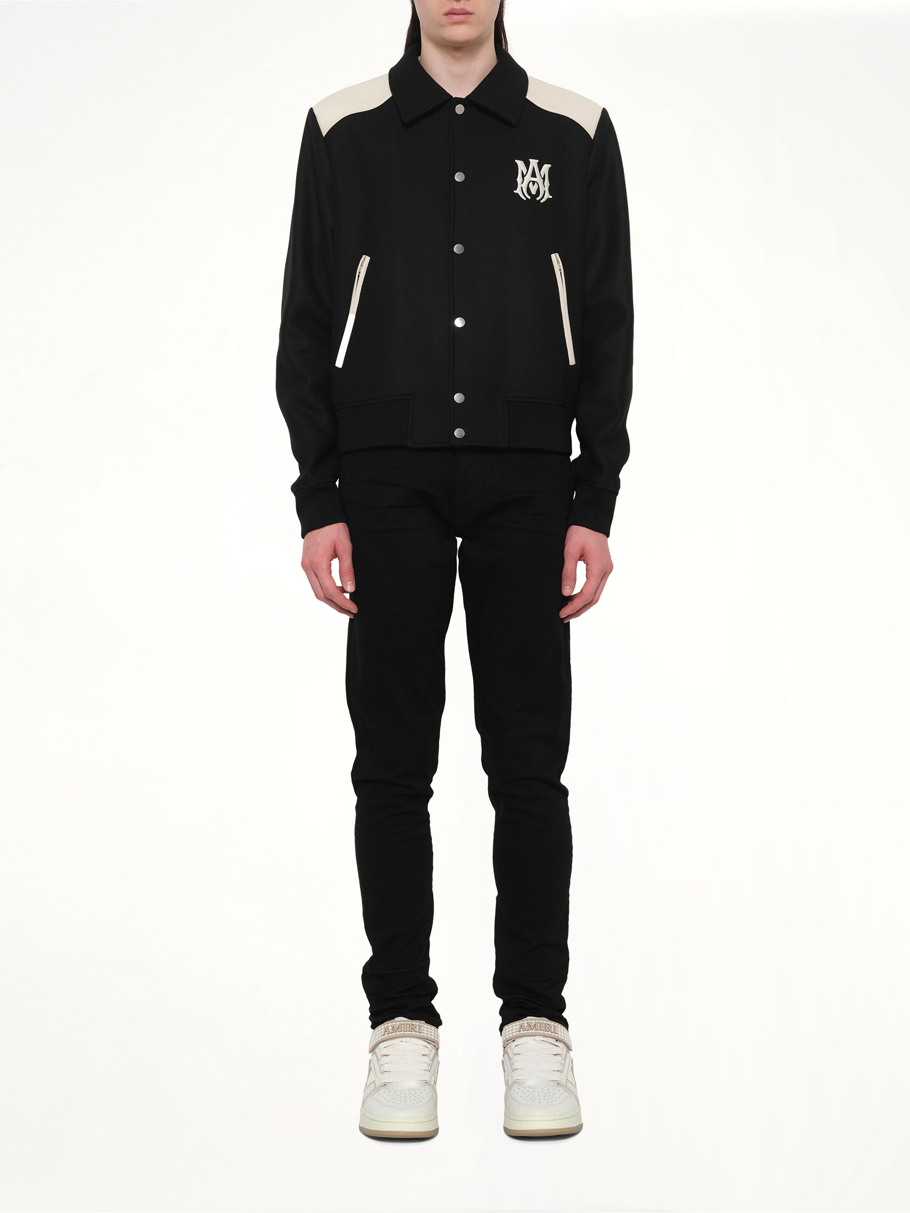 Amiri's MA Band Jacket in Black is a stylish and contemporary piece that combines classic design with modern flair. Perfect for adding a touch of sophistication to any outfit, this jacket is a must-have for fashion-forward individuals.