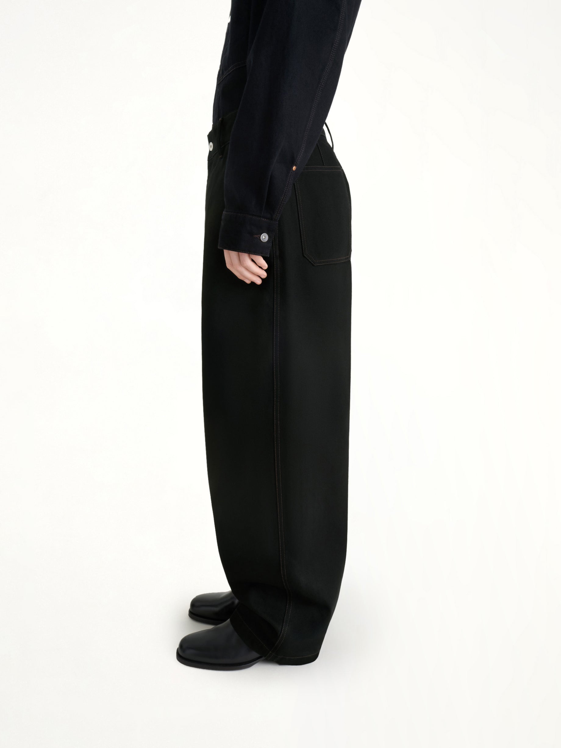 Lemaire's Maxi Barrel Workwear Pants in Black is a versatile and stylish addition to any wardrobe. These pants offer a modern silhouette with a focus on comfort and functionality.