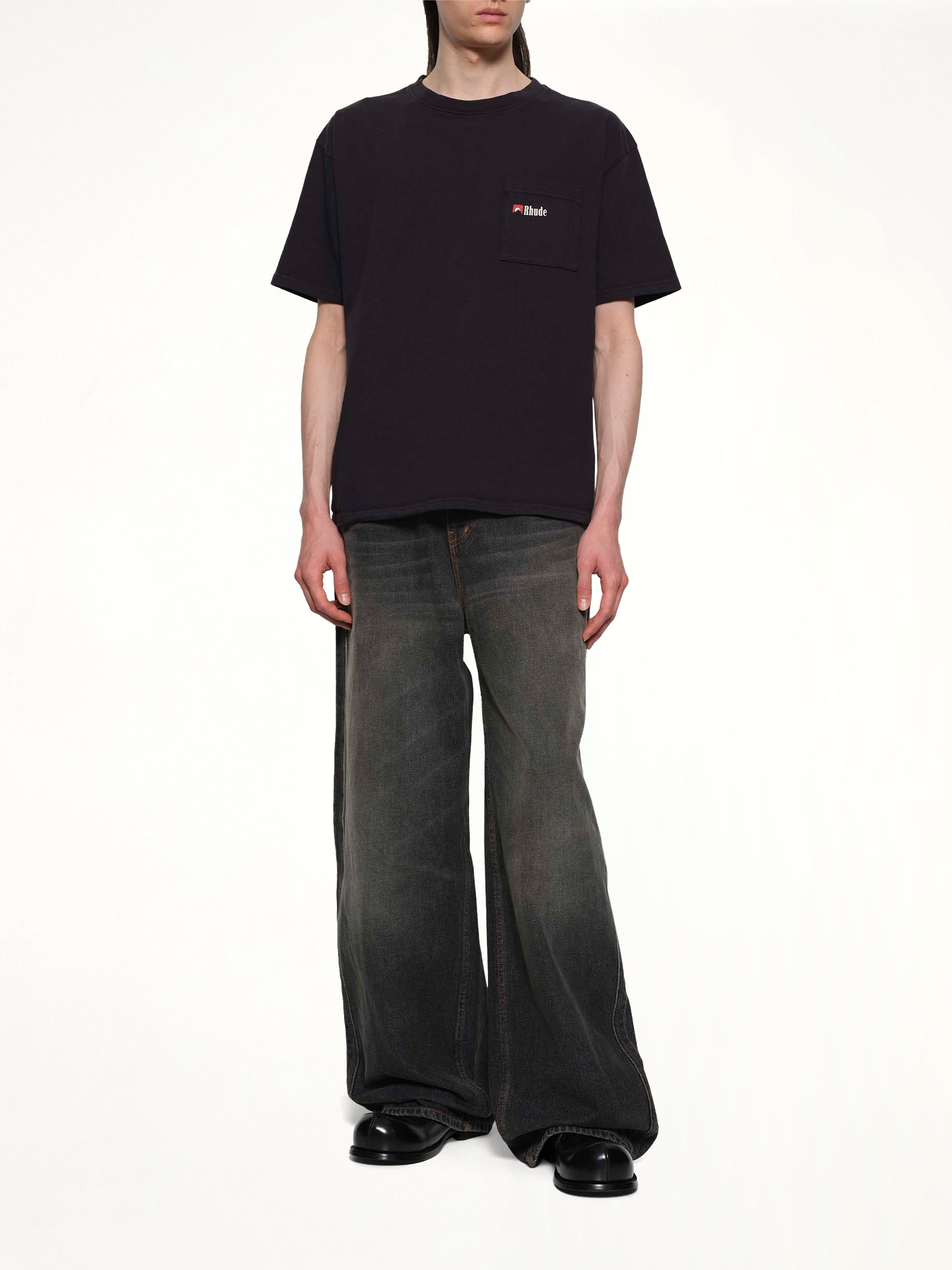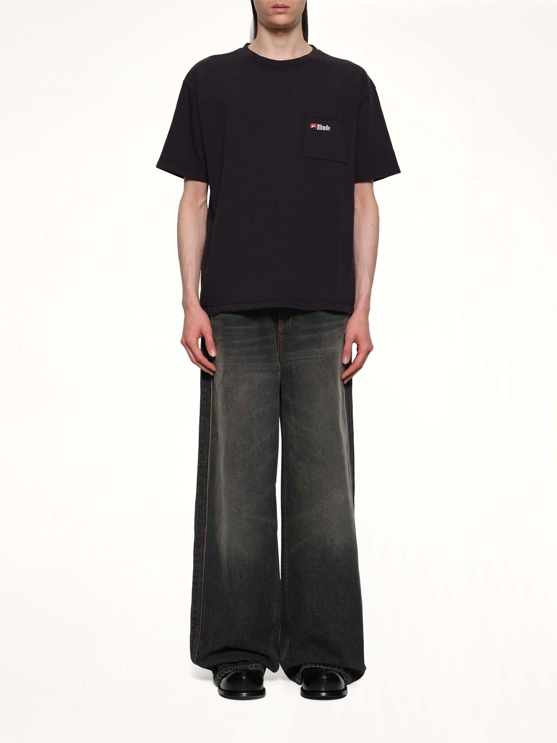 Rhude's Moonlight Wolf Pocket T-Shirt in Vintage Black is a stylish and bold statement piece. Featuring a unique graphic design, this t-shirt is perfect for casual outings or making a fashion-forward impression.