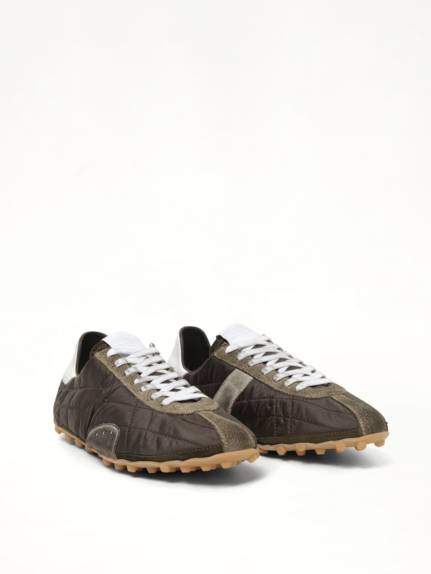 Maison Margiela's Sprinters Low Sneaker in Dark Green/White/Grey is a stylish and versatile footwear option that combines contemporary design with classic elements. Perfect for both casual and semi-formal occasions, these sneakers offer comfort and a modern aesthetic.