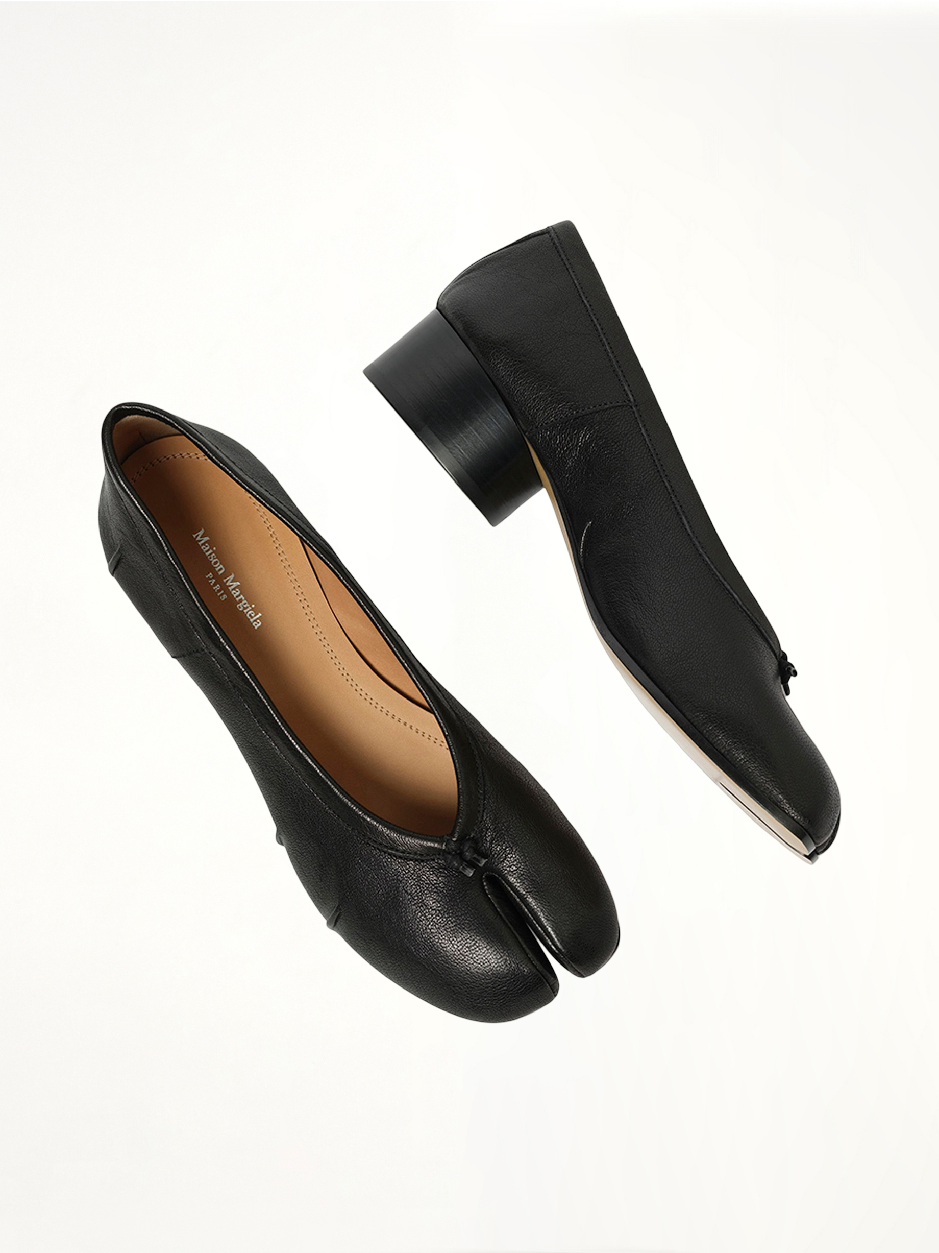 Introducing the new Tabi Ballerina in Black. With its sleek design and comfortable fit, this shoe is perfect for any occasion. The unique split-toe design allows for maximum flexibility and the black colour adds a touch of sophistication.