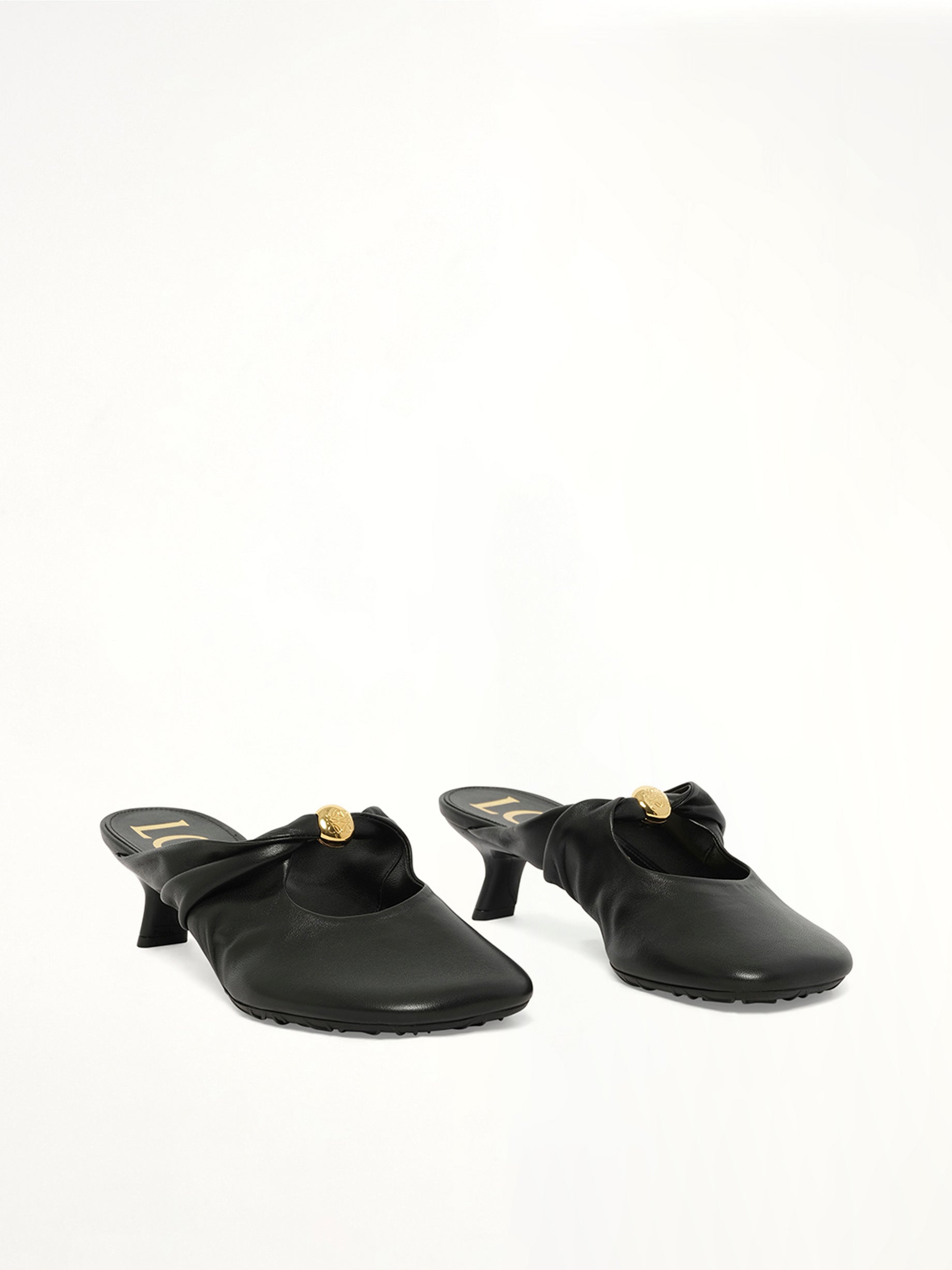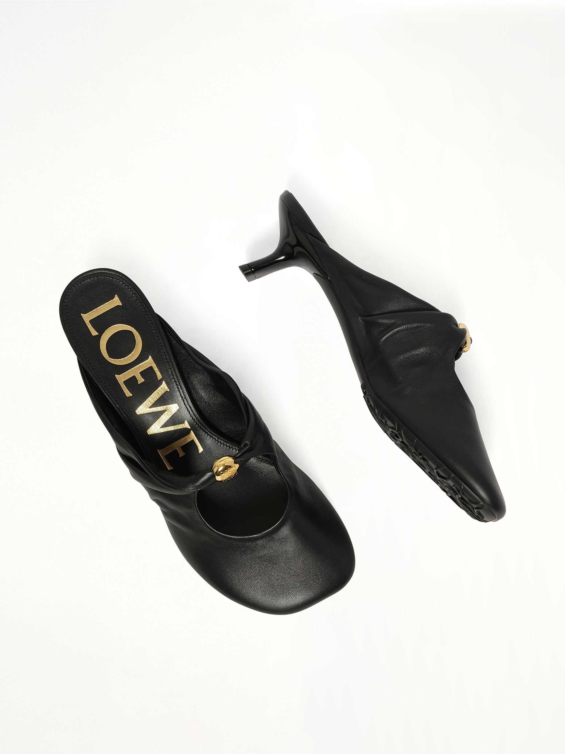 Loewe's Pebble Soft Mule 45H in Black is a sophisticated and versatile footwear choice, perfect for elevating any ensemble. With its sleek design and comfortable fit, it seamlessly combines style and practicality.