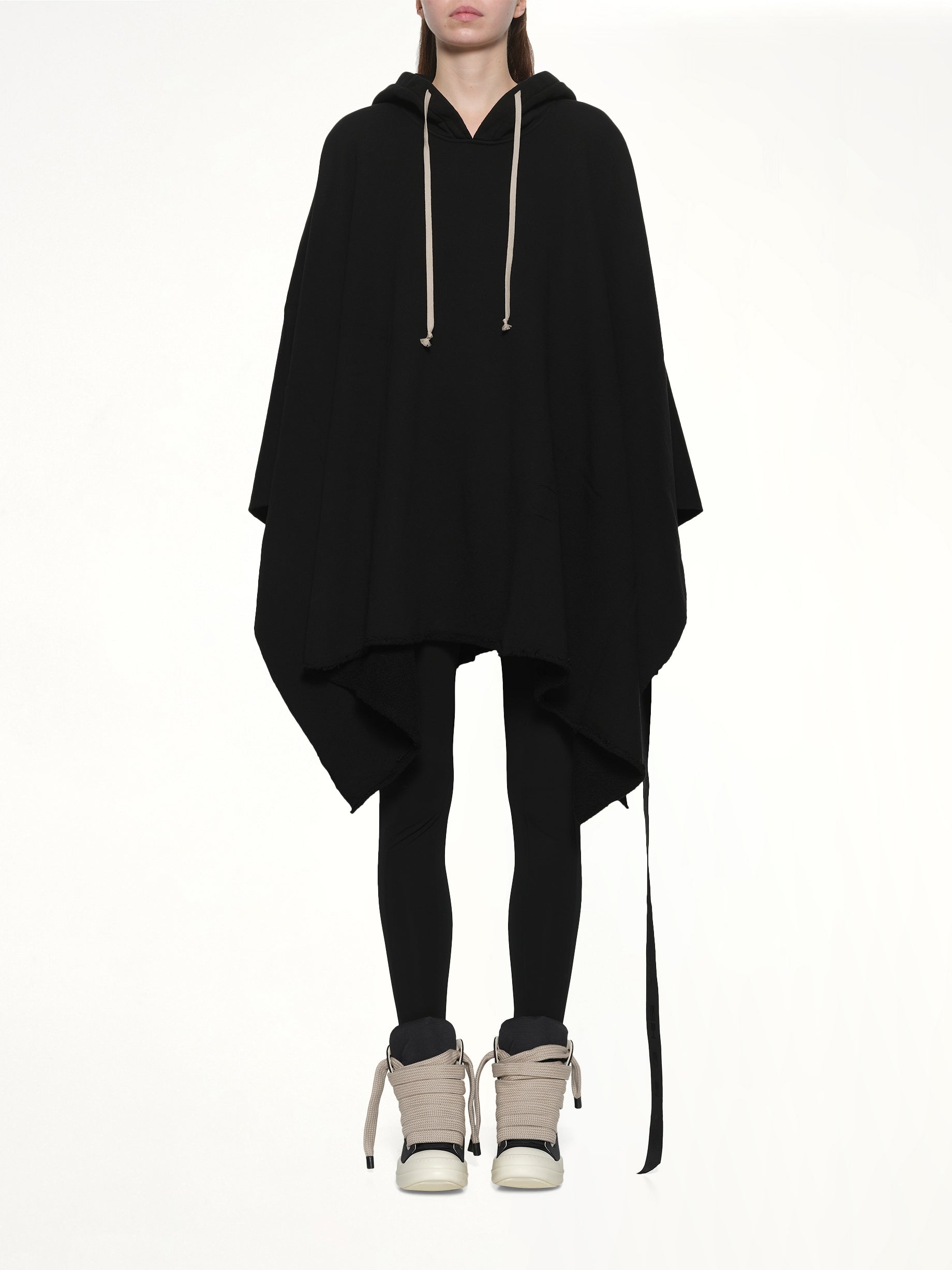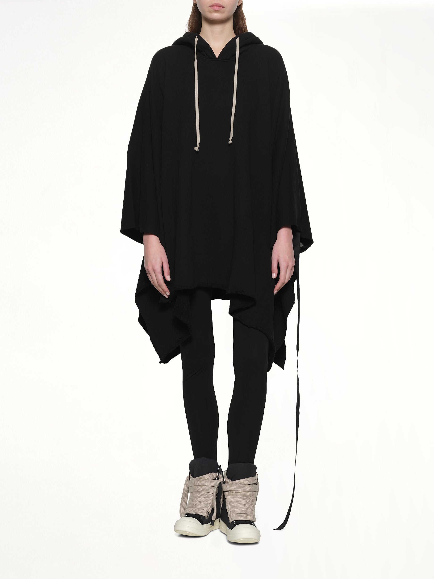DRKSHDW's Poncho in Black is a versatile and stylish outerwear piece that combines functionality with a modern aesthetic. Its minimalist design and oversized fit make it a standout addition to any wardrobe.