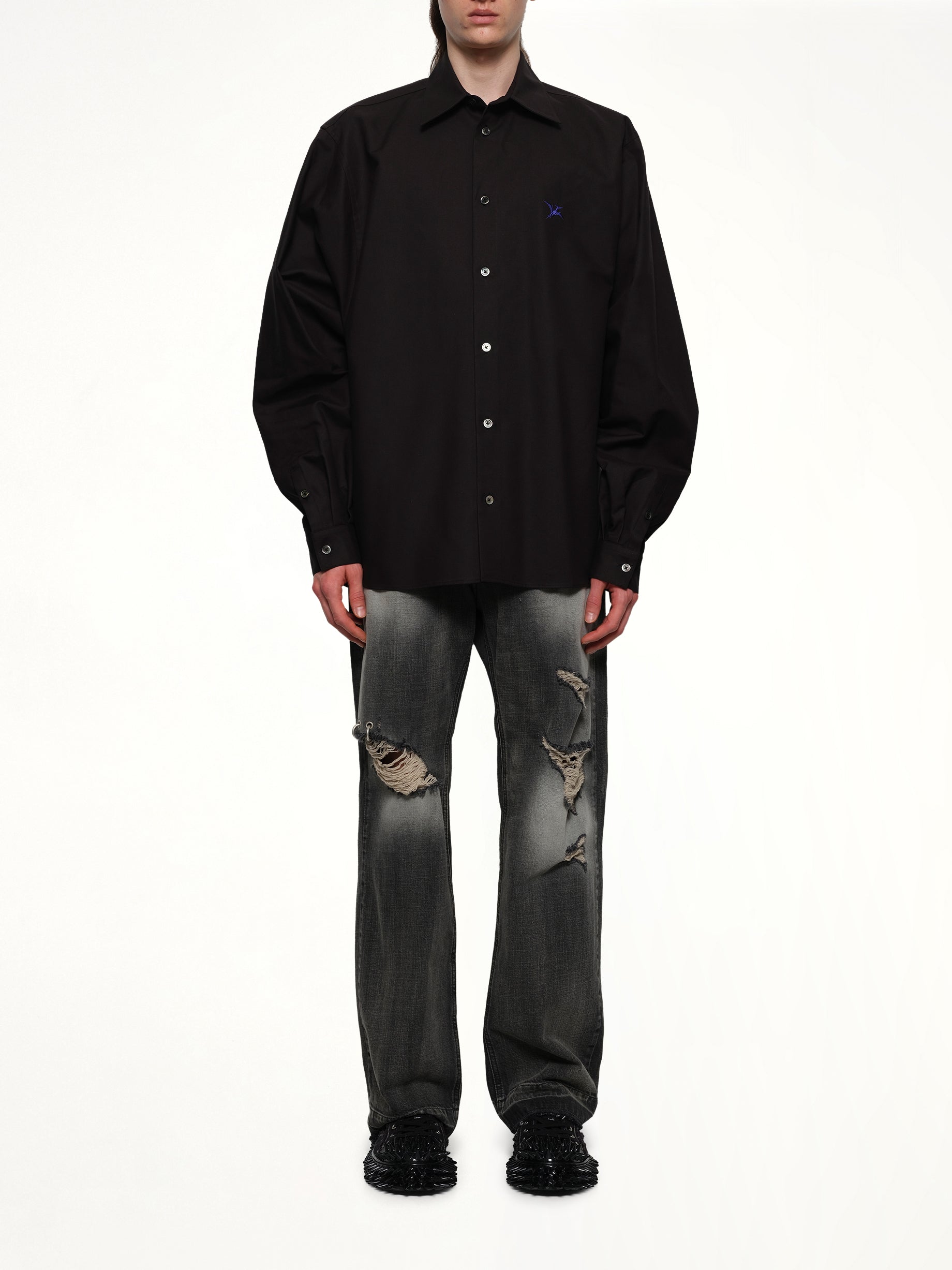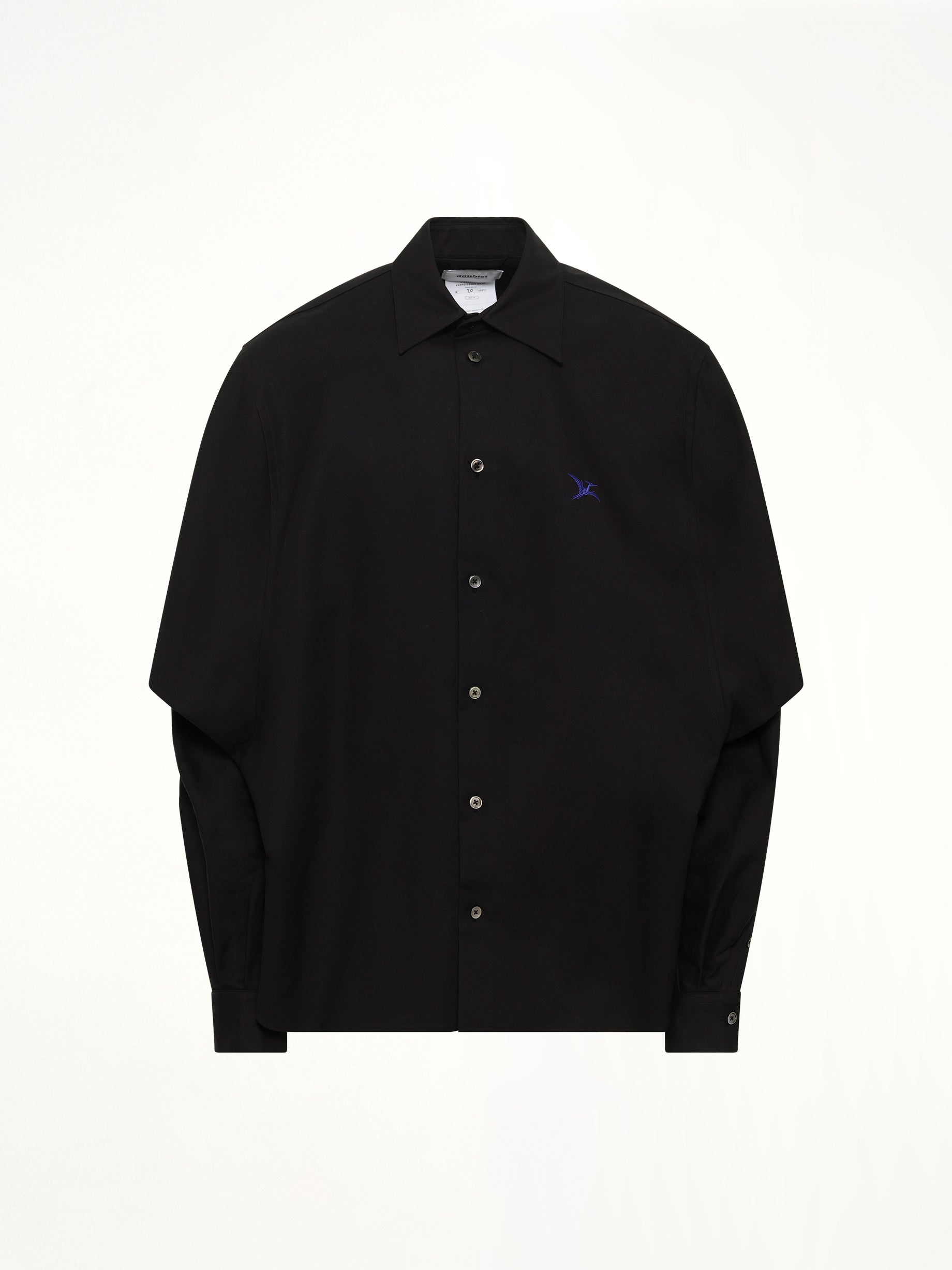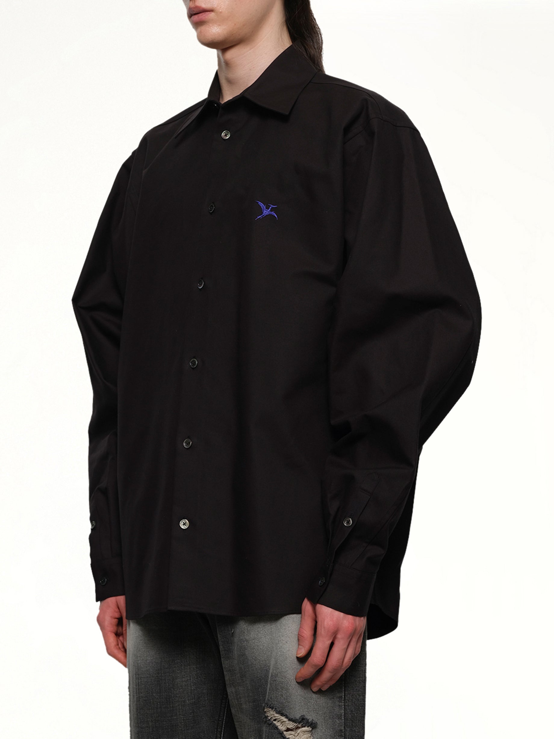 Doublet's Pteranodon Embroidered Shirt in Black is a striking piece that combines bold design with intricate detailing. This shirt features a unique embroidered Pteranodon motif that adds a touch of prehistoric flair to any outfit.