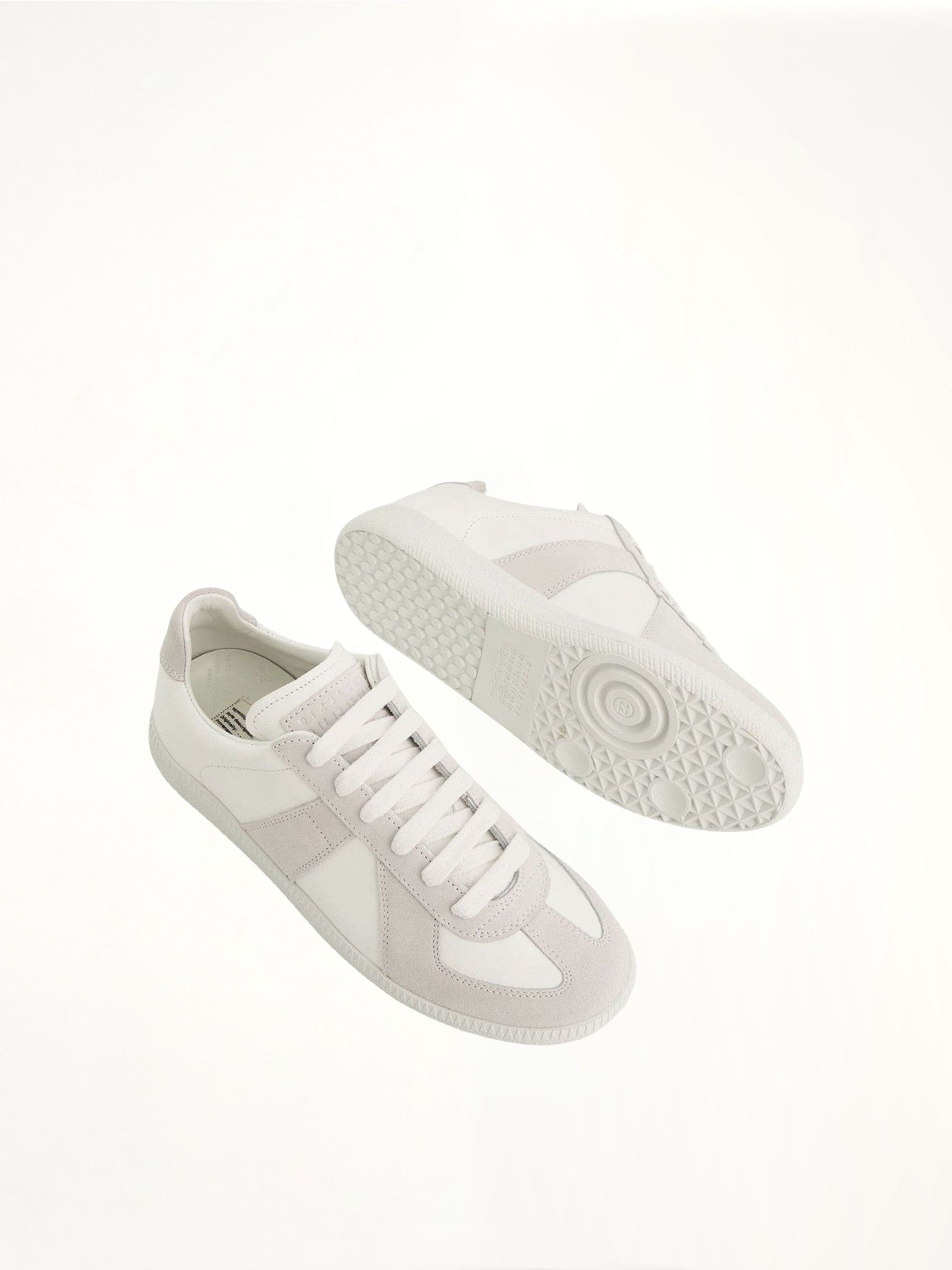 The Maison's iconic Replica sneakers are inspired by Austrian sports shoes from the seventies. Details on the Replica pairs are continually reworked in line with the season's inspirations. This iconic Replica sneaker in white panelled design and suede trim provide a classic look that will never go out of style, perfect for any season. Experience timeless style and versatility with these classic sneakers.