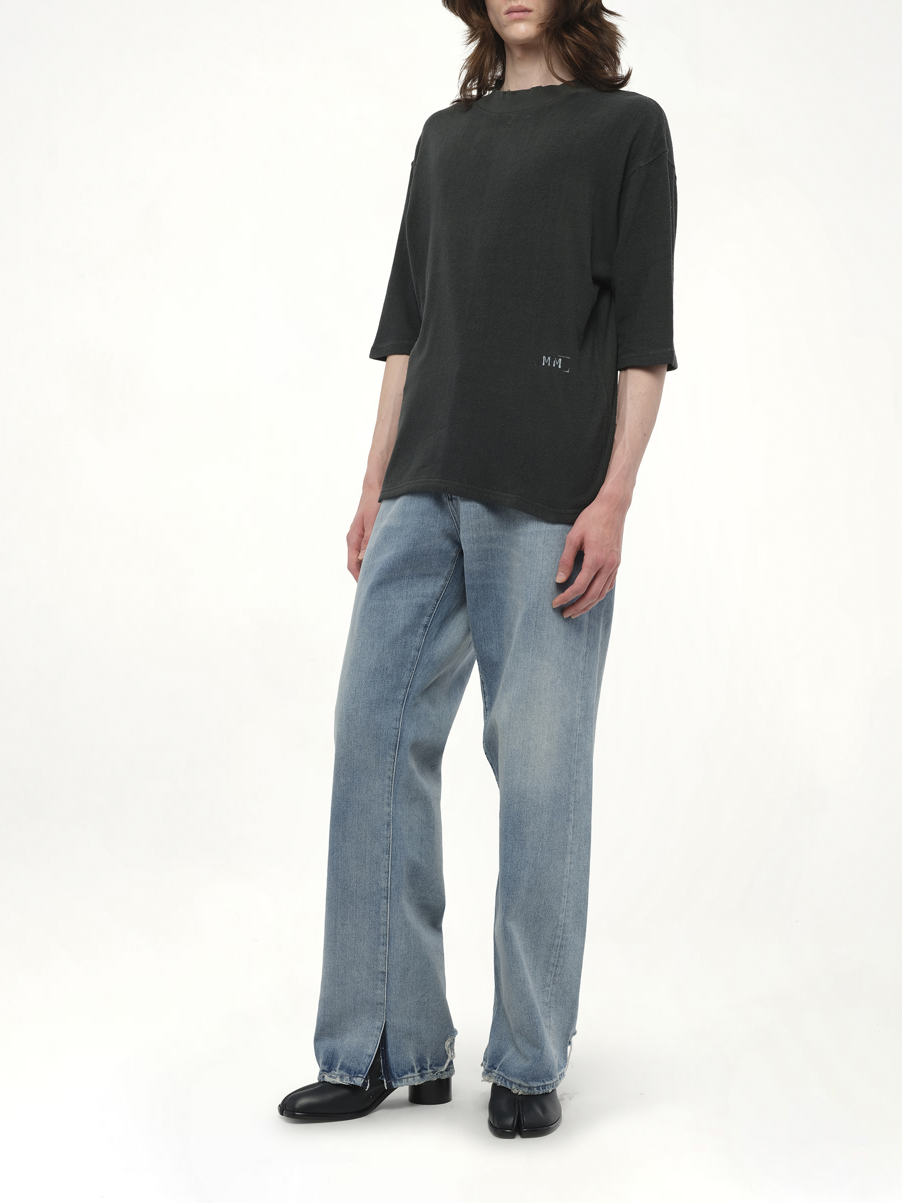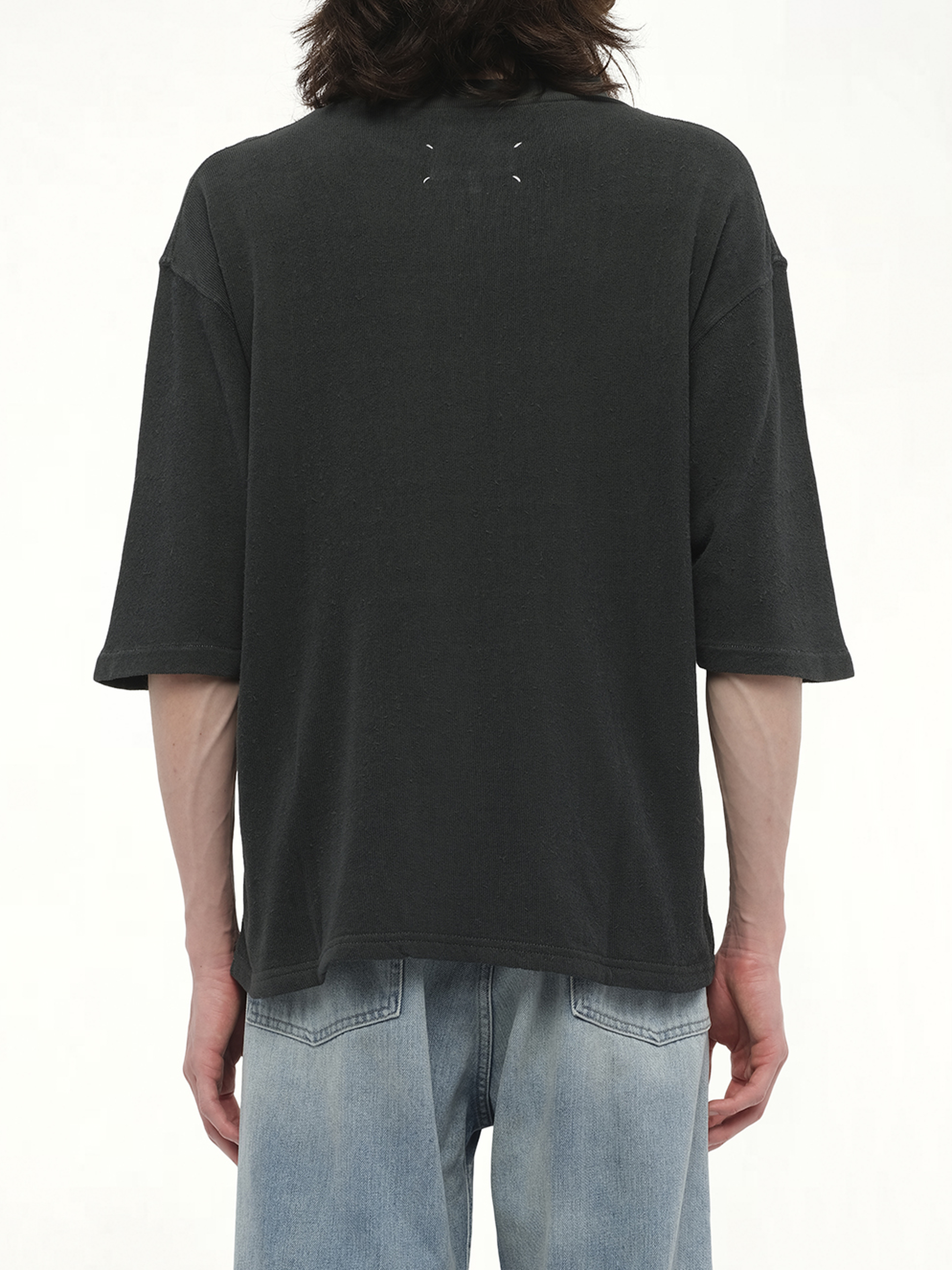 Maison Margiela's Reverse Terry T-Shirt in Washed Black offers a unique twist on a classic staple, combining comfort with avant-garde design. Elevate your casual wardrobe with this distinctive piece that embodies the brand's innovative spirit.
