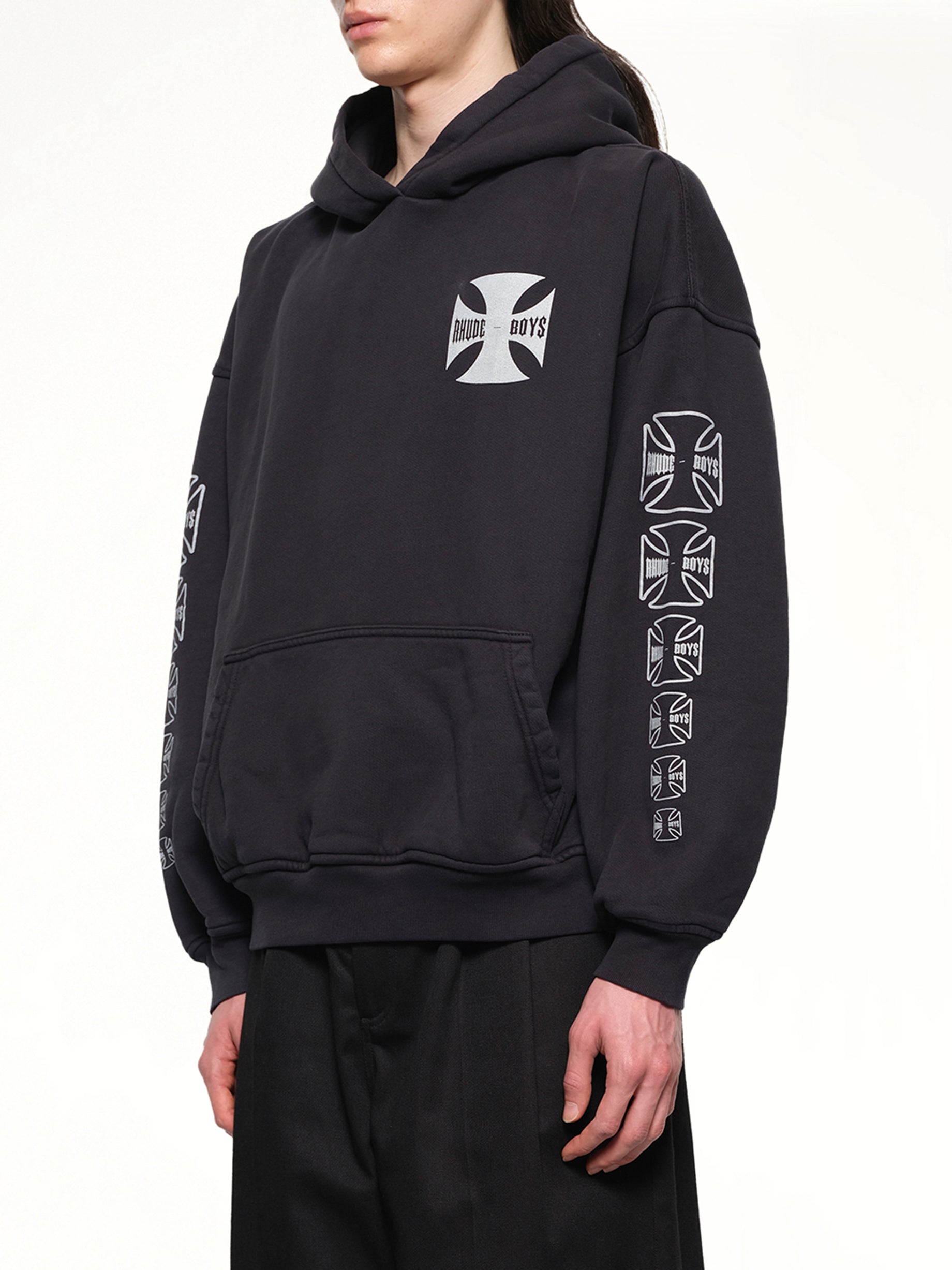 Rhude's Rhude Boys Hoodie in Vintage Black is a stylish and versatile piece that combines comfort with a modern edge. Perfect for casual outings, this hoodie offers a relaxed fit and a timeless design.