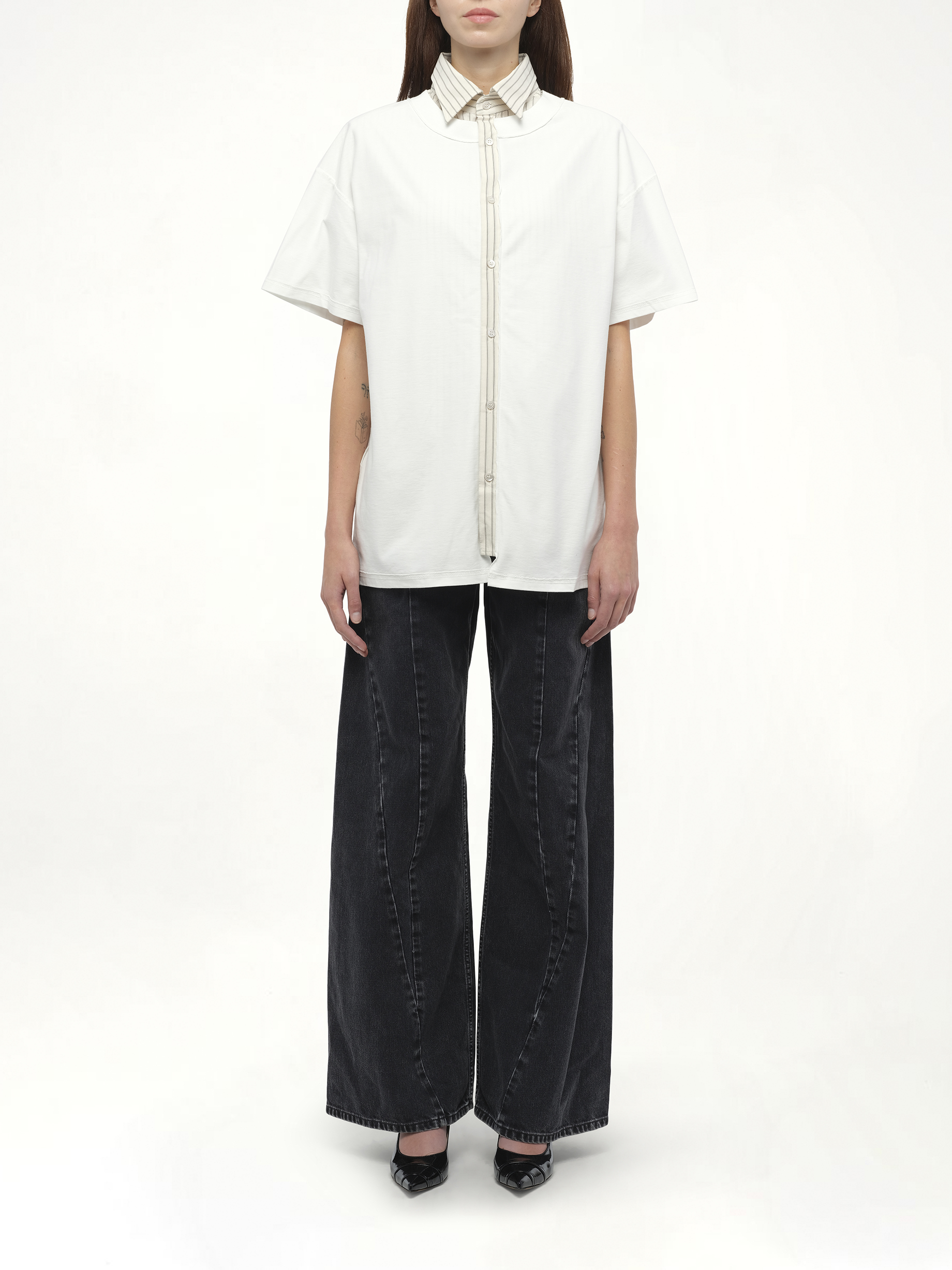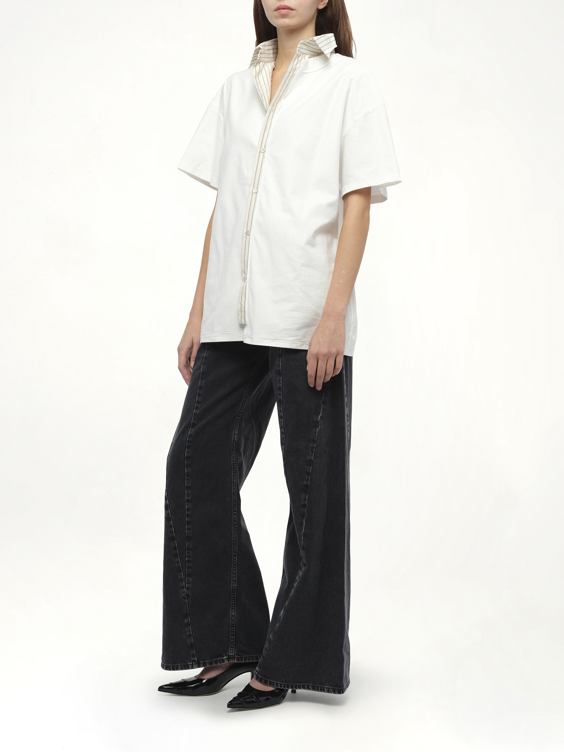 Maison Margiela's Short-sleeved Top in Off White is a versatile piece that effortlessly combines elegance with casual style. Perfect for any occasion, this top is a must-have addition to your wardrobe.