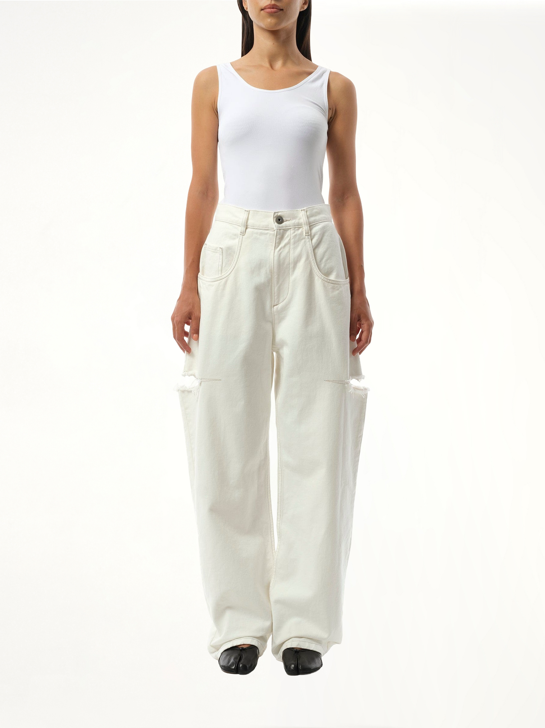 Get the perfect blend of style and comfort with our Slash Loose Fit Denim Jeans in Off White. These jeans offer a relaxed fit with slash detailing for a touch of edge. Crafted from high-quality denim, they are perfect for all-day wear.