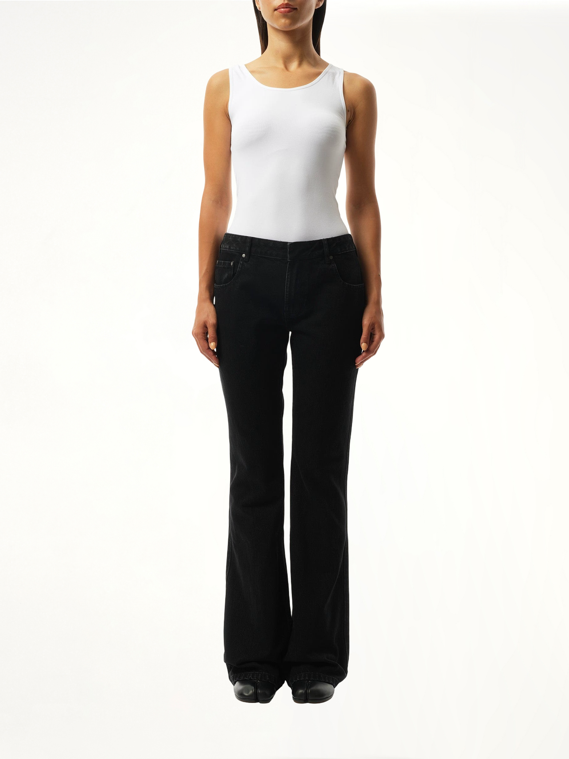 As an industry expert, these Magnetite slim-flared jeans are designed to flatter your figure with their slimming silhouette. Made with premium quality denim, they are perfect for any occasion and provide a sleek, contemporary look.