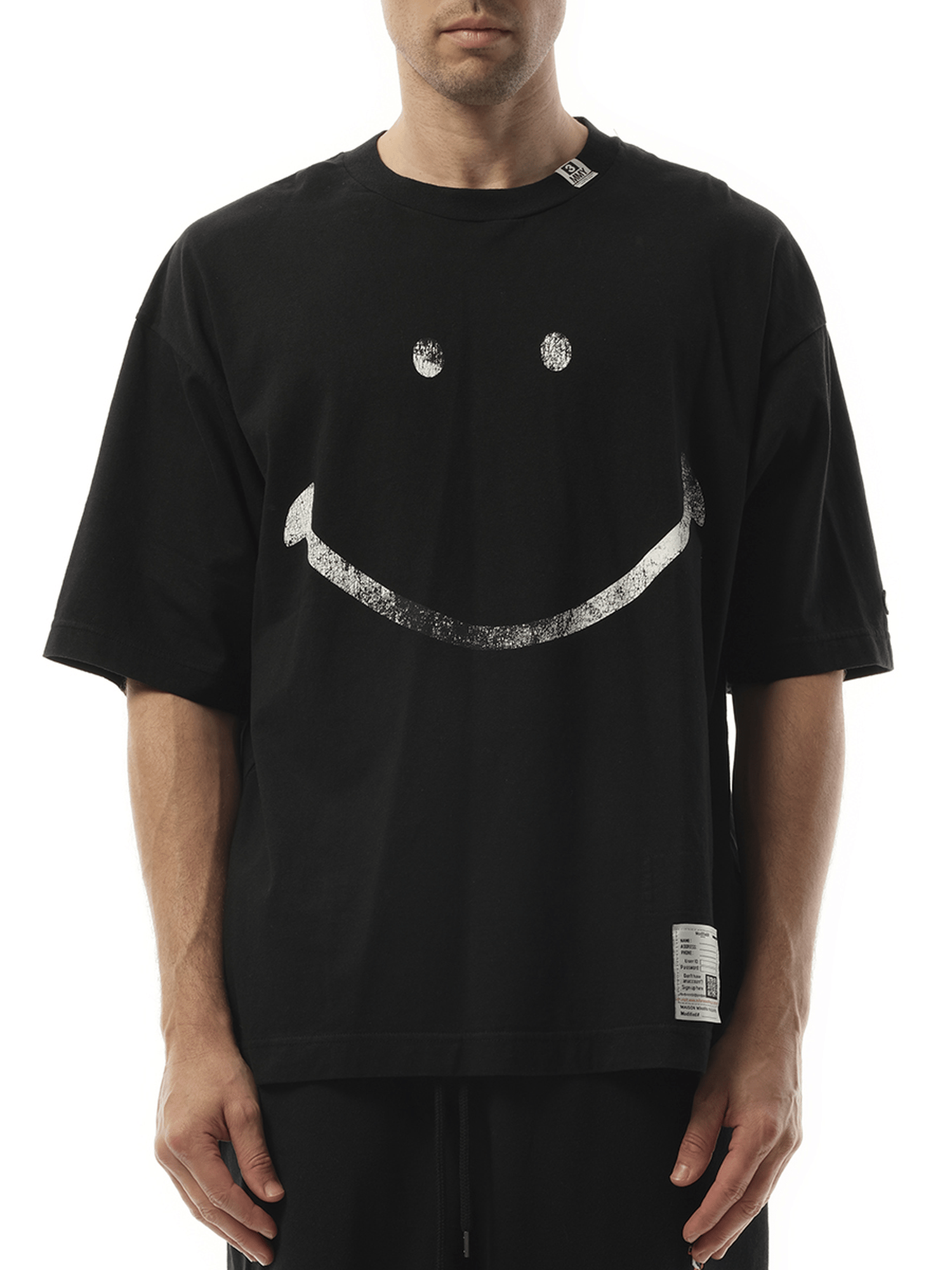 Made with high-quality materials, this t-shirt features a unique smily face design that adds a touch of fun and personality to your wardrobe. Its comfortable fit and versatile black color make it a must-have for any fashion-forward individual.