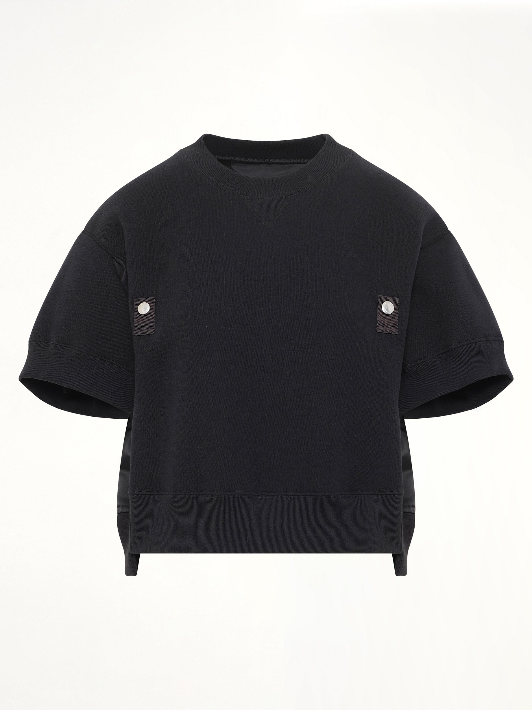 Sacai's Sponge Sweat Short Sleeve Pullover in Black is a versatile and stylish addition to any wardrobe. This pullover combines comfort with a modern silhouette, making it perfect for casual outings or relaxed evenings.